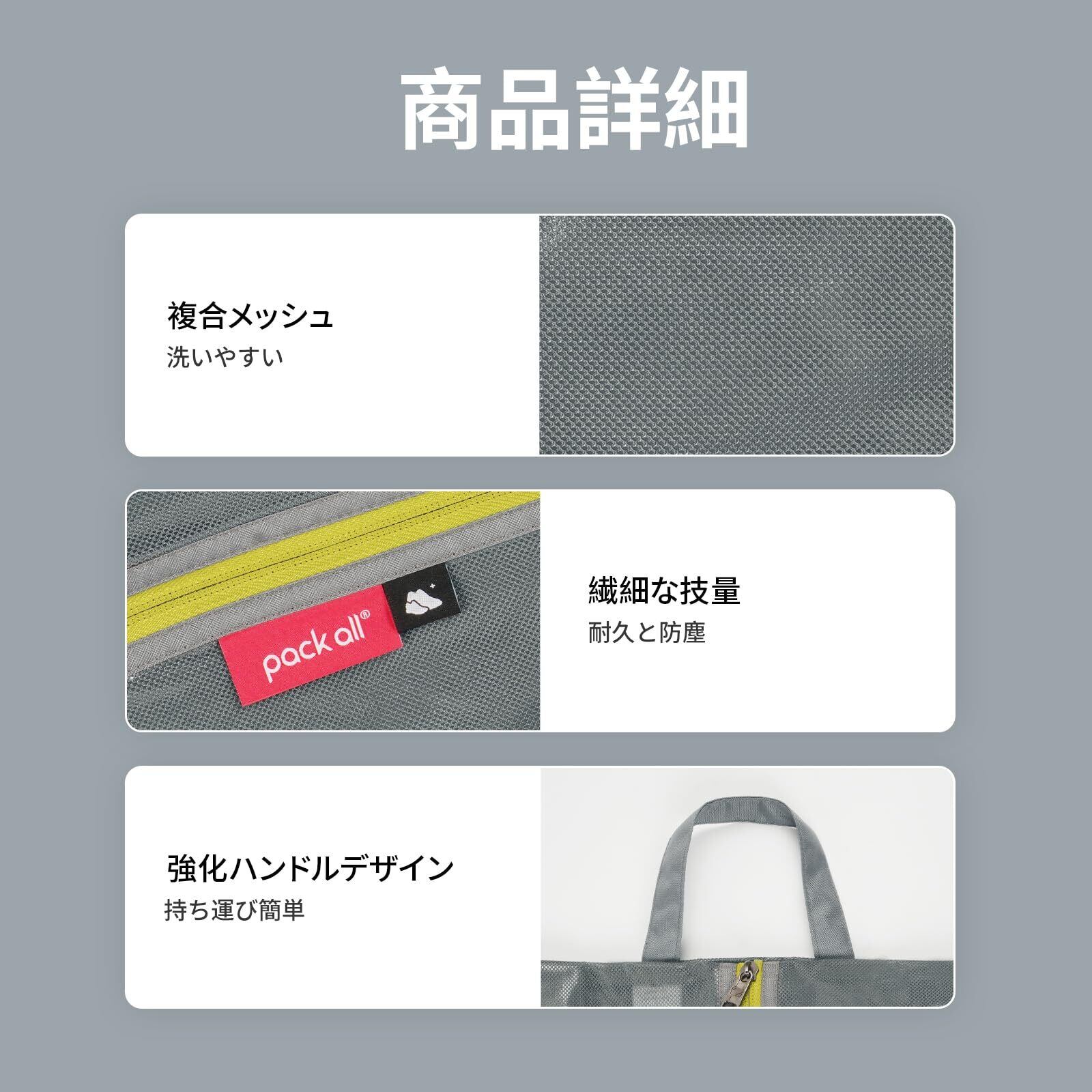 【2022最新】pack all シューズケース シューズバッグ 二重ポケット構造 超軽量 撥水加工 半透明 色とサイズ選び可能 シューズ袋 上履き入れ 靴入れ 衣類入れ 収納バッグ 旅行 出張 スポーツ アウトドア 学校 家庭用 拡大版 グレー