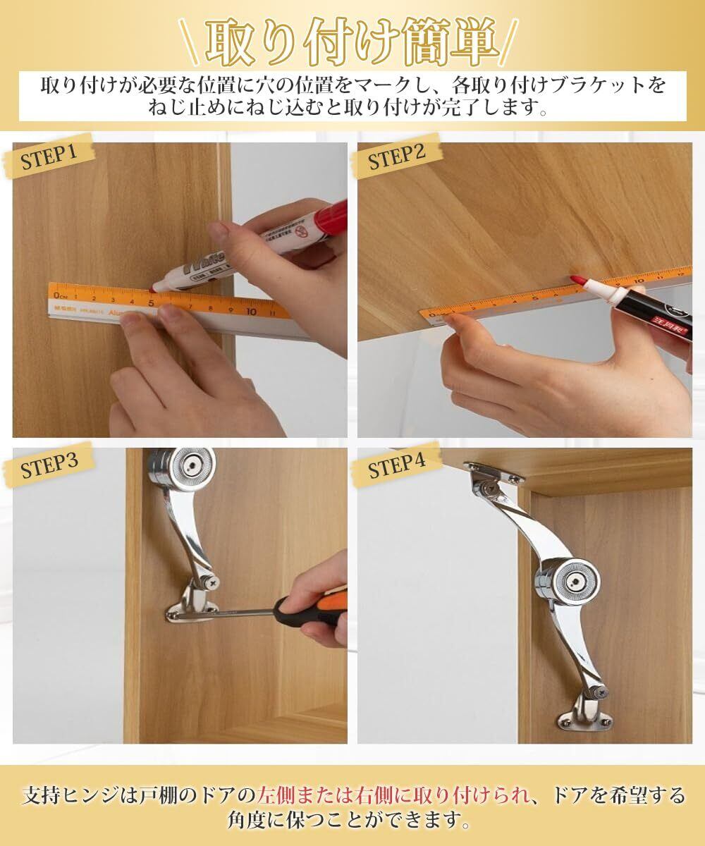 【2022最新】蓋ヒンジ 折り畳み式蓋サポートヒンジ リフトアップサポート 開け閉め 金具 DIY 家具 食器棚用 サポートヒンジ (2個)