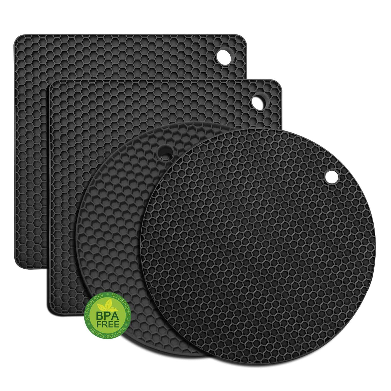 【特価商品】aninako 鍋敷き シリコン 4枚セット (四角2枚+円2枚)耐熱 滑り止め ダイニングテーブル保護 やけど防止 多機能 簡単な洗浄 サスペンション収納可能 (ブラック(4個入り)) | KURASHILABO