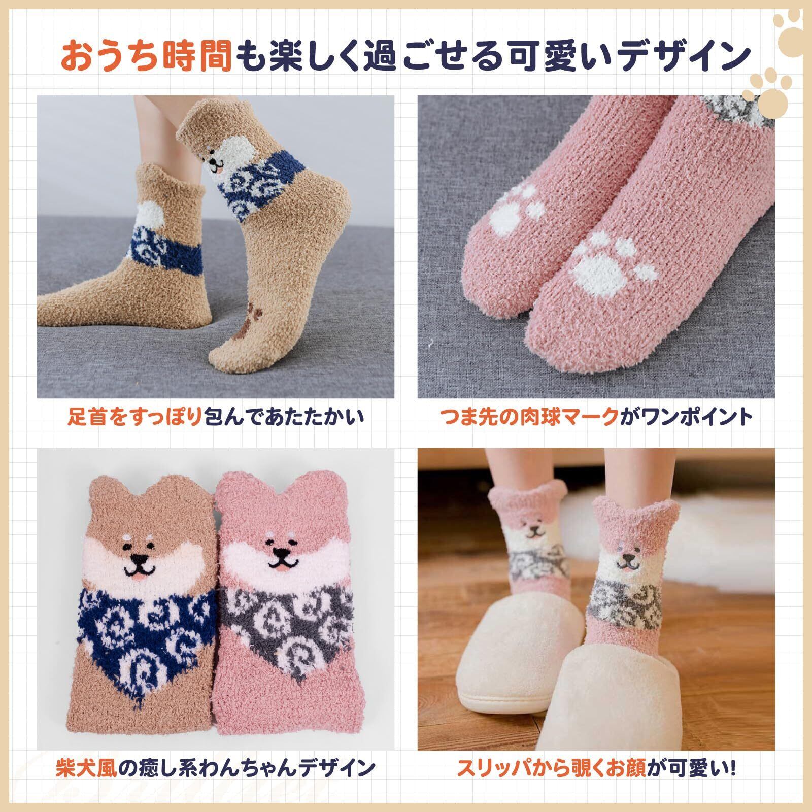【特価セール】[Brilliet] もこもこ靴下 ルームソックス アニマル レディース あったかい フワフワ 冬用 厚手 防寒 セット | KURASHILABO