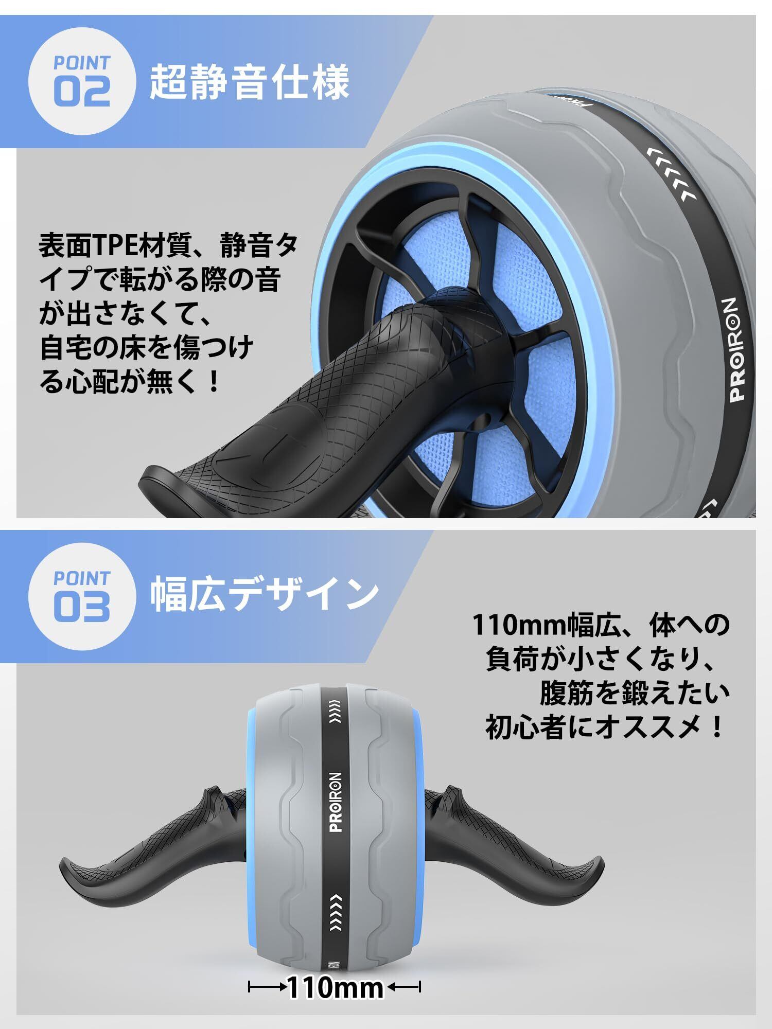 【在庫セール】PROIRON アブローラーアシスト付き 腹筋ローラー 初心者 エクササイズローラー 組み立て 静音 耐荷重150kg