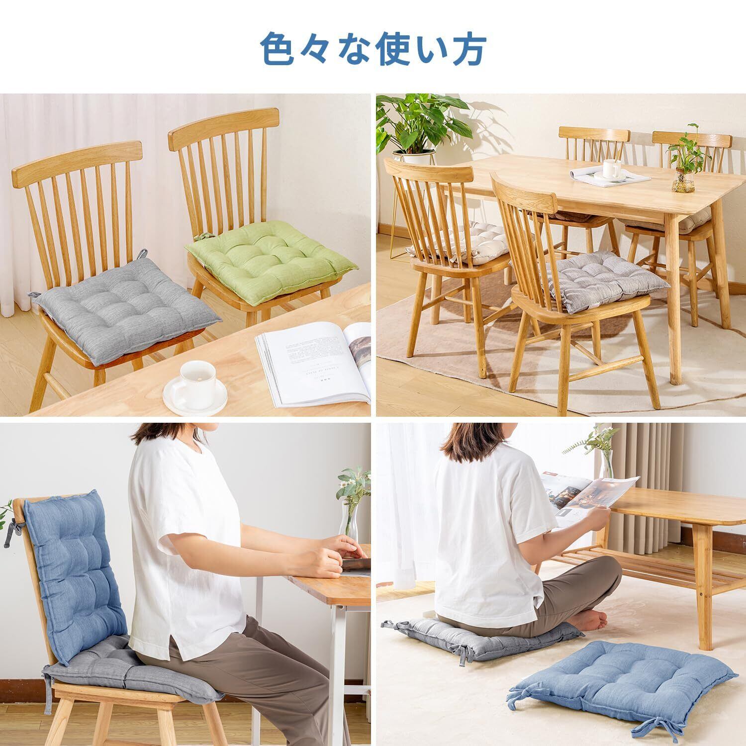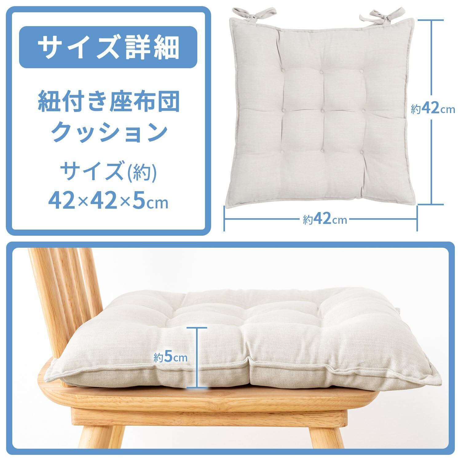 【2022最新】AIFY 座布団 椅子 クッション 厚め 紐付き 2枚セット ふわふわ 麻風 無地 オールシーズン シートクッション ダイニングチェア用 42x42x5cm クリーム 2枚セット | KURASHILABO