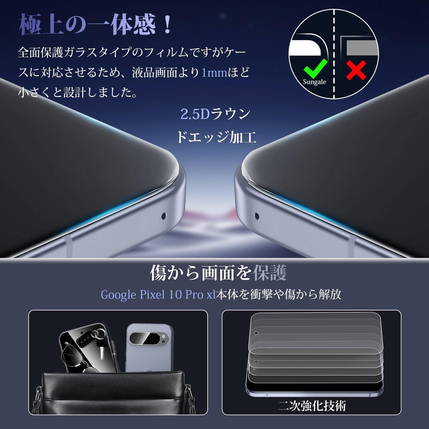 【在庫処分】Sungale Google Pixel 10 Pro XL ガラスフィルム Pixel10 Pro XL フィルム 2枚+Pixel10 Pro XL カメラフィルム2枚 指紋認証対応 Pixel 10 ProXL ガラスフィルム 強化ガラス 全面保護 旭硝子製素材 レンズ保護 グーグルピクセル10Pro XL 保護フィルム ケース対応 高光沢 Google Pixel 10 Pro XLフィルム