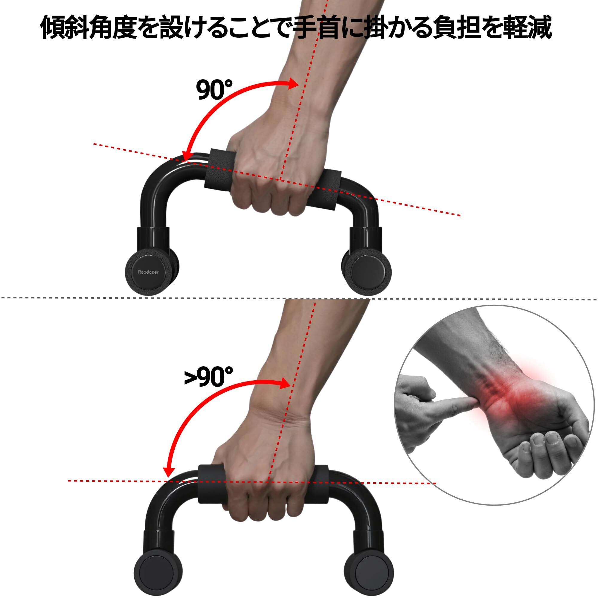 【在庫セール】Reodoeer プッシュアップバー 腕立て伏せ 筋肉トレーニング 傾斜グリップ 持ち運び便利 軽量 安定感 胸筋トレーニング 筋トレグッズ 自宅筋トレ フィットネス