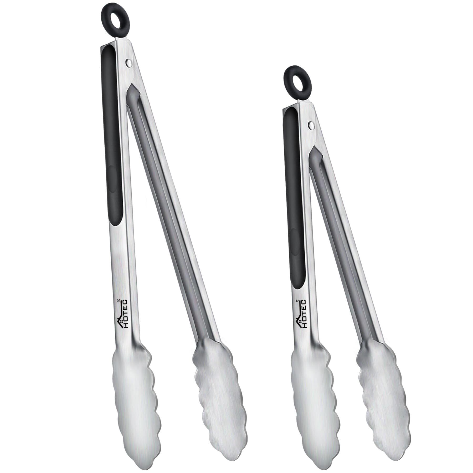 【新春セール】Hotec トング ステンレス キッチントング 2 本セット 焼き肉/バーベキュー用 耐熱抗菌 スタンド付き ロック式収納便利 調理トング