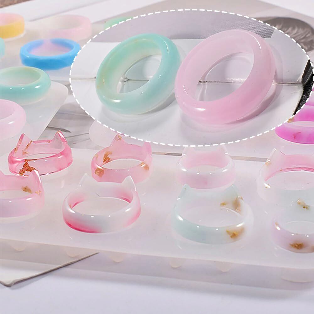 【数量限定】2セット 16種類 指輪 シリコンモールド 指輪 円弧形 猫の耳形 シリコンモールド リング レジン型 リング型 宝石 ジュエリー 手芸用品 レジンアクセサリー | KURASHILABO