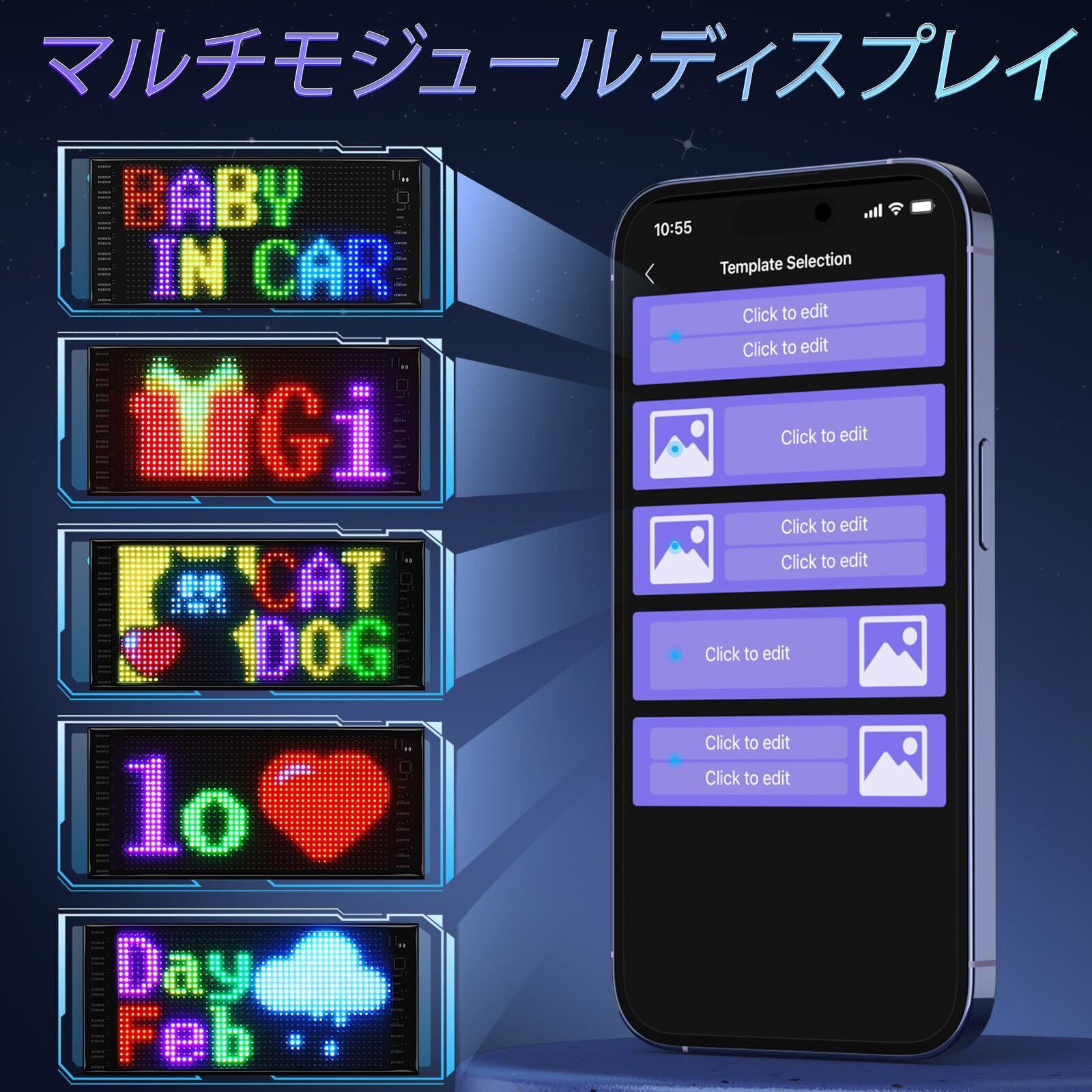 【在庫セール】Kutuspon 新しい 2列显示 LED 電光掲示板 、明るいプログラム可能なスクロール LED 看板 車 悪魔の目、柔軟なローリング app コントロール多言語 電飾看板 掲示板 車のための目を導いた デビルアイ (27cmx12cm) | KURASHILABO