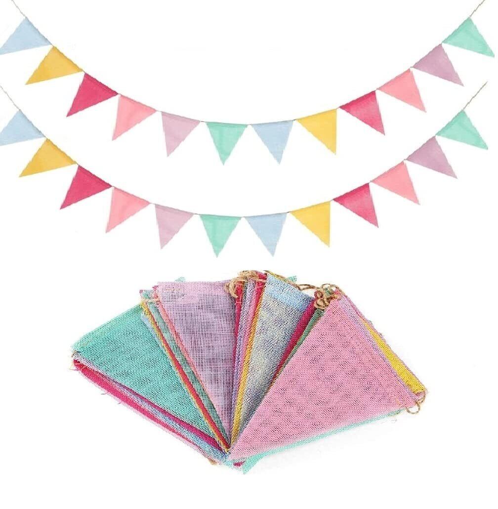 【特価商品】Bethany Home 三角旗 2本セット ガーランド 亜麻 約4m長 麻ロープ キャンプフラッグ バナー アウトドア旗 パーティー飾り 誕生日 子供部屋飾り 壁飾り 結婚式 ウエディング 記念日 水洗い可能 可愛い リサイクル可能 写真 デコレーション (カラフル-2PCS) | KURASHILABO