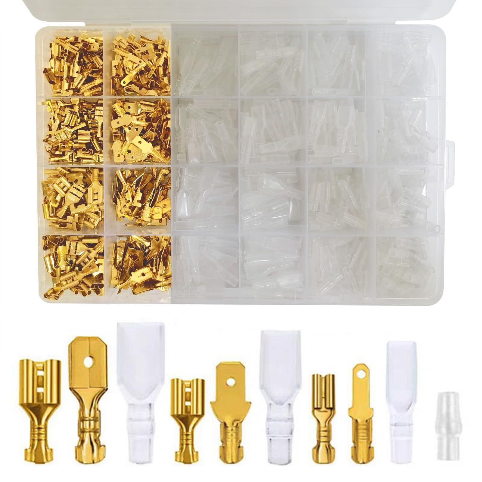 【数量限定】平型端子セット 600個セット 110型 187型 250型 オス・メスセット ファストン端子 絶縁スリーブ カバー付き 配線接続 圧着端子 自動車 バイク スピーカー 収納ケース付き | KURASHILABO