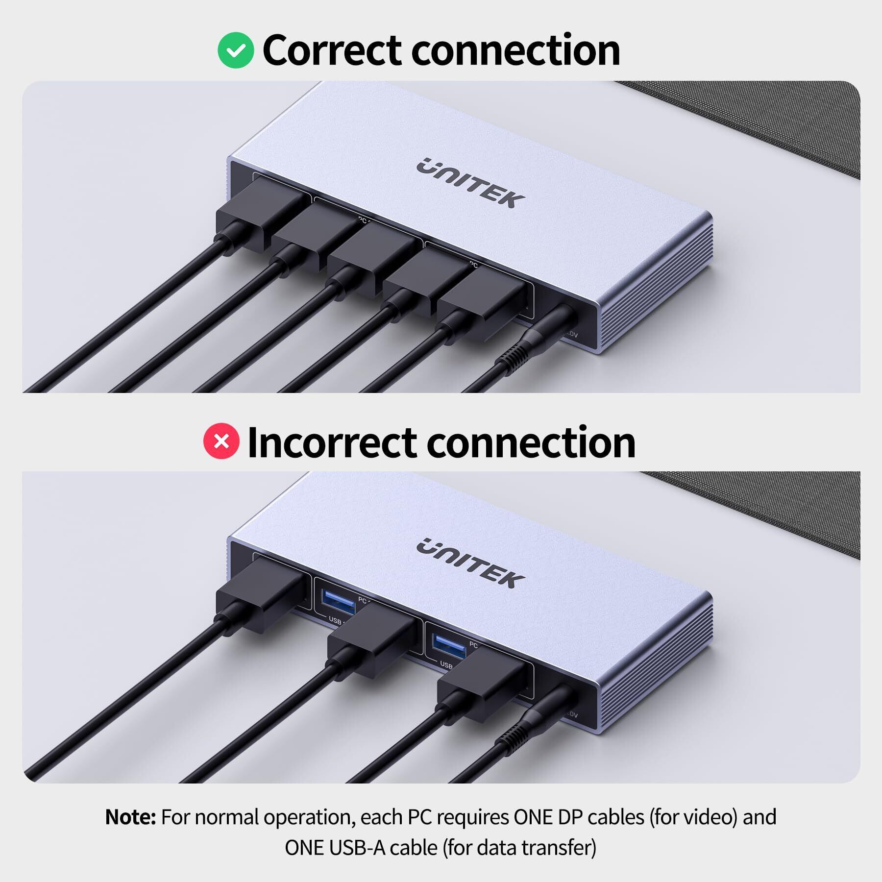 【新春セール】Unitek DP KVM切替器 2in1アウト 4K@144Hz USB3.0 KVM切り替え 1台のコンピュータで2台のデバイスを共有 USB4ポート搭載 | KURASHILABO