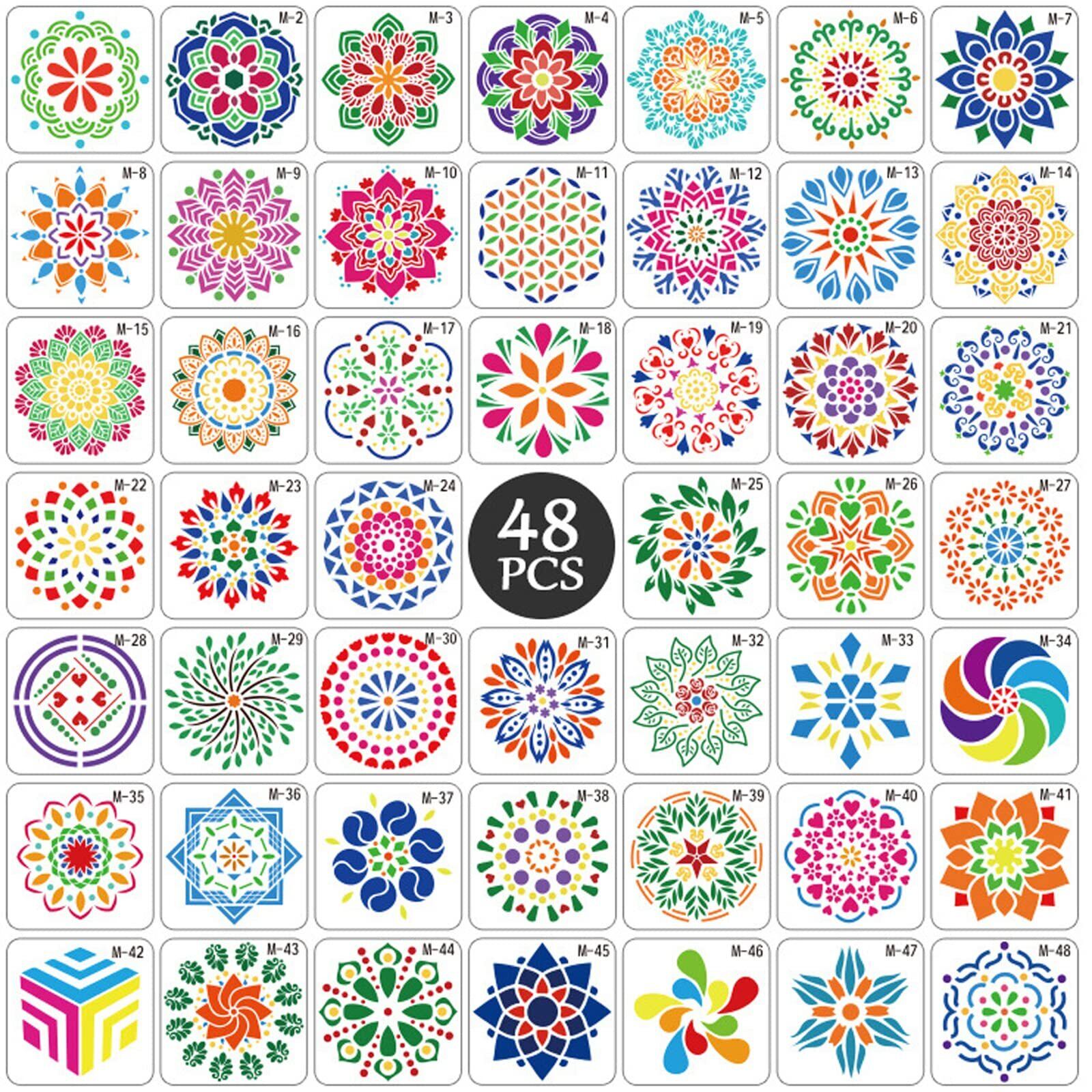 【在庫処分】EUSTACE 48枚セット ステンシルシート 曼荼羅 13x13cmマンダラ 花柄 テンプレート 製図ステンシル 描画ステンシルプレート メッセージ DIYスクラップ 絵画 塗装 絵描き道具 大容量 | KURASHILABO