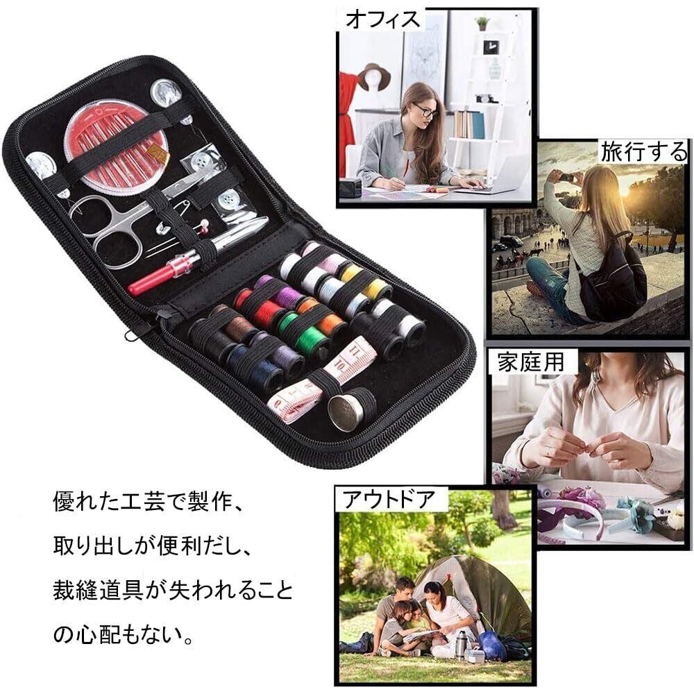 【新着商品】サムコス 裁縫セット ソーイングセット 14色糸 携帯式 刺繍 手芸 家庭用 裁縫道具セット 裁縫練習 衣類補修 家庭用 旅行用 初心者 男女兼用 (ブラック収納バッグ付き) | KURASHILABO