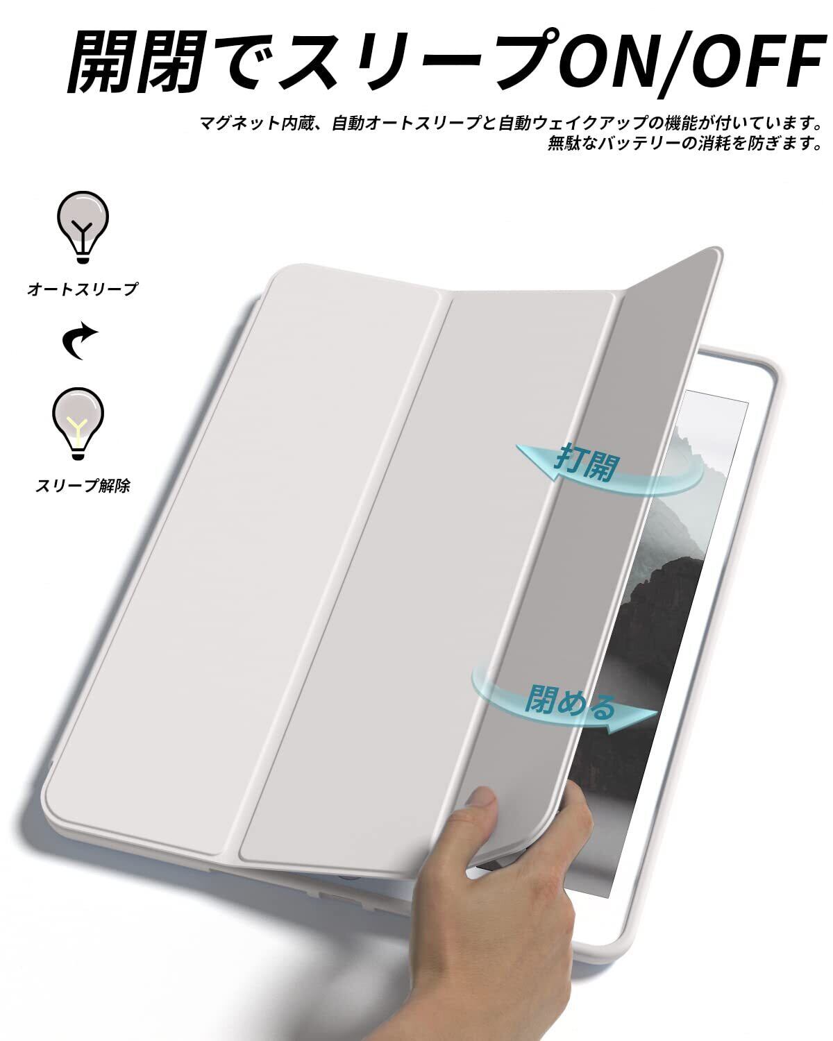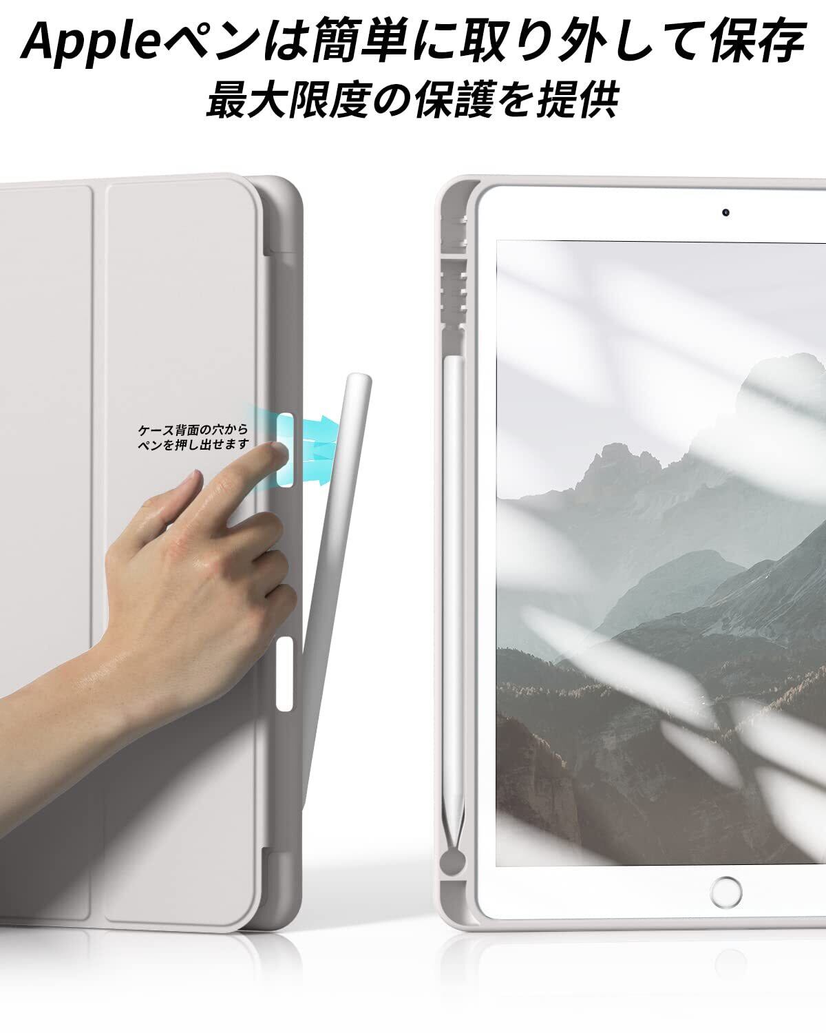 【新着商品】Aoub iPad 10.2 インチ 第9/8/7世代 (2021/2020/2019年) ケース オートスリープ/ウェイク機能対応 Apple Pencilペン収納・ホルダー付 スマートカバー ソフト TPU 薄型 軽量 耐衝撃 三つ折りスタンド グレー
