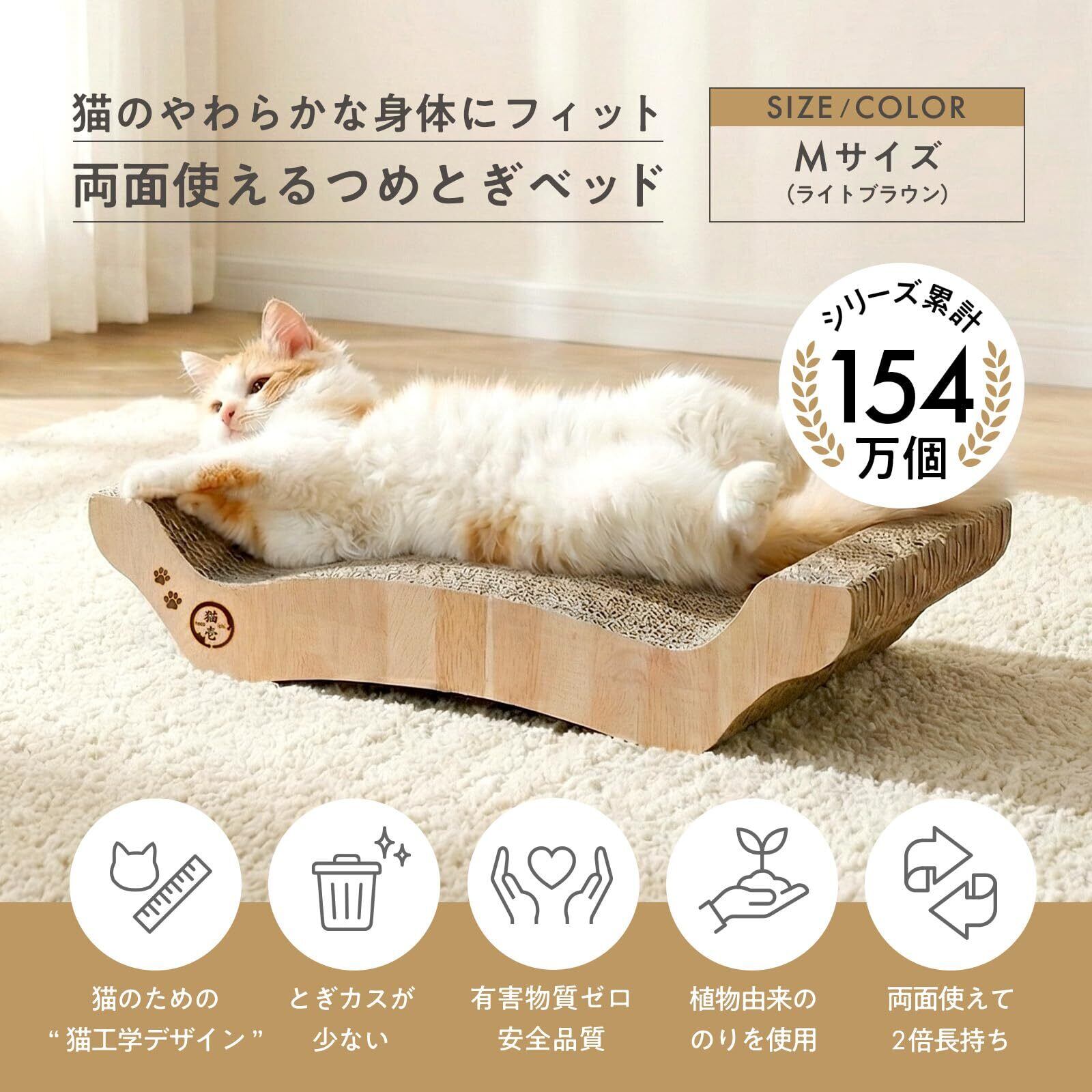 【人気商品】猫壱 バリバリベッドM 爪研ぎ ライトブラウン