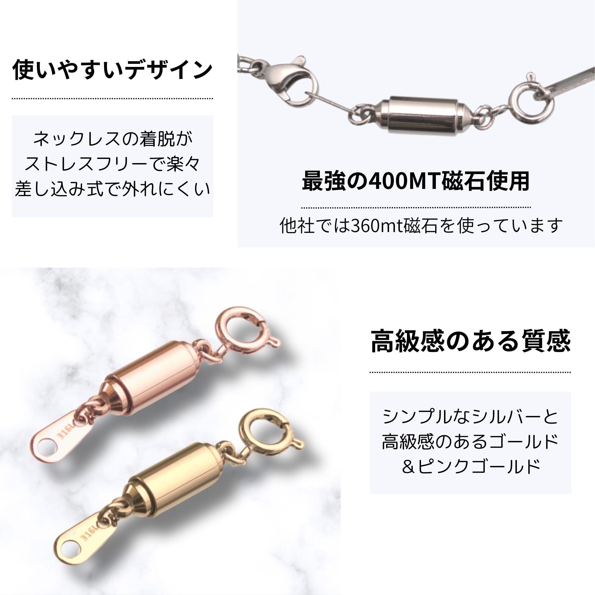 【新着商品】[MAYA&CANA] ネックレス マグネット留め具 マグネットクラスプ 強力 ステンレス 脱着楽々 35mm/2g (ゴールド) | KURASHILABO