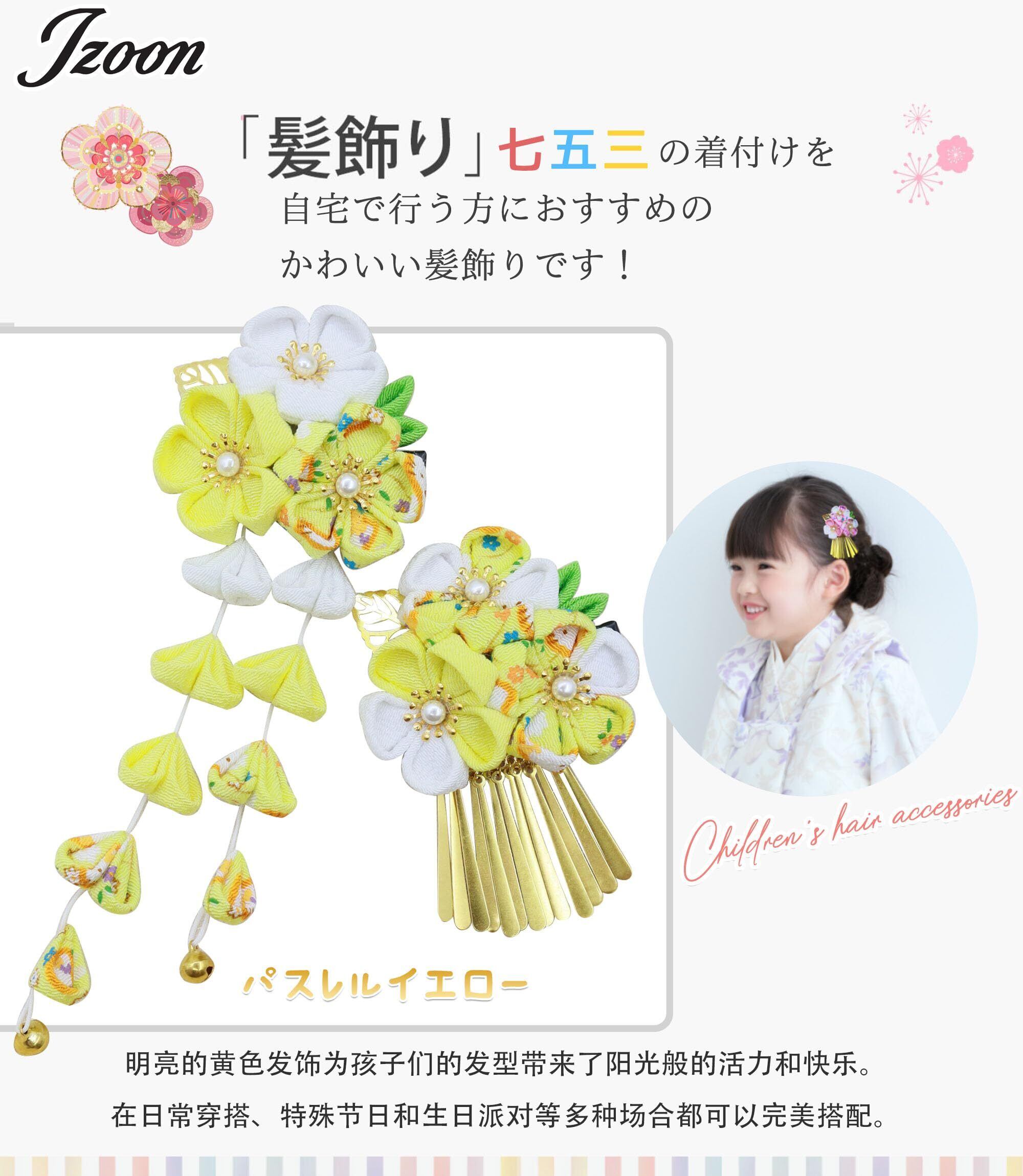 【在庫処分】[JZOON] 髪飾り 6カラー 七五三 髪飾り つまみ細工 七五三 753 ヘアアクセサリー 成人式 和装 浴衣 袴 着物 振袖 和装 花 卒業式 結婚式 女の子 鈴付き 手作り 2点セット 可愛い 黄色 H4202