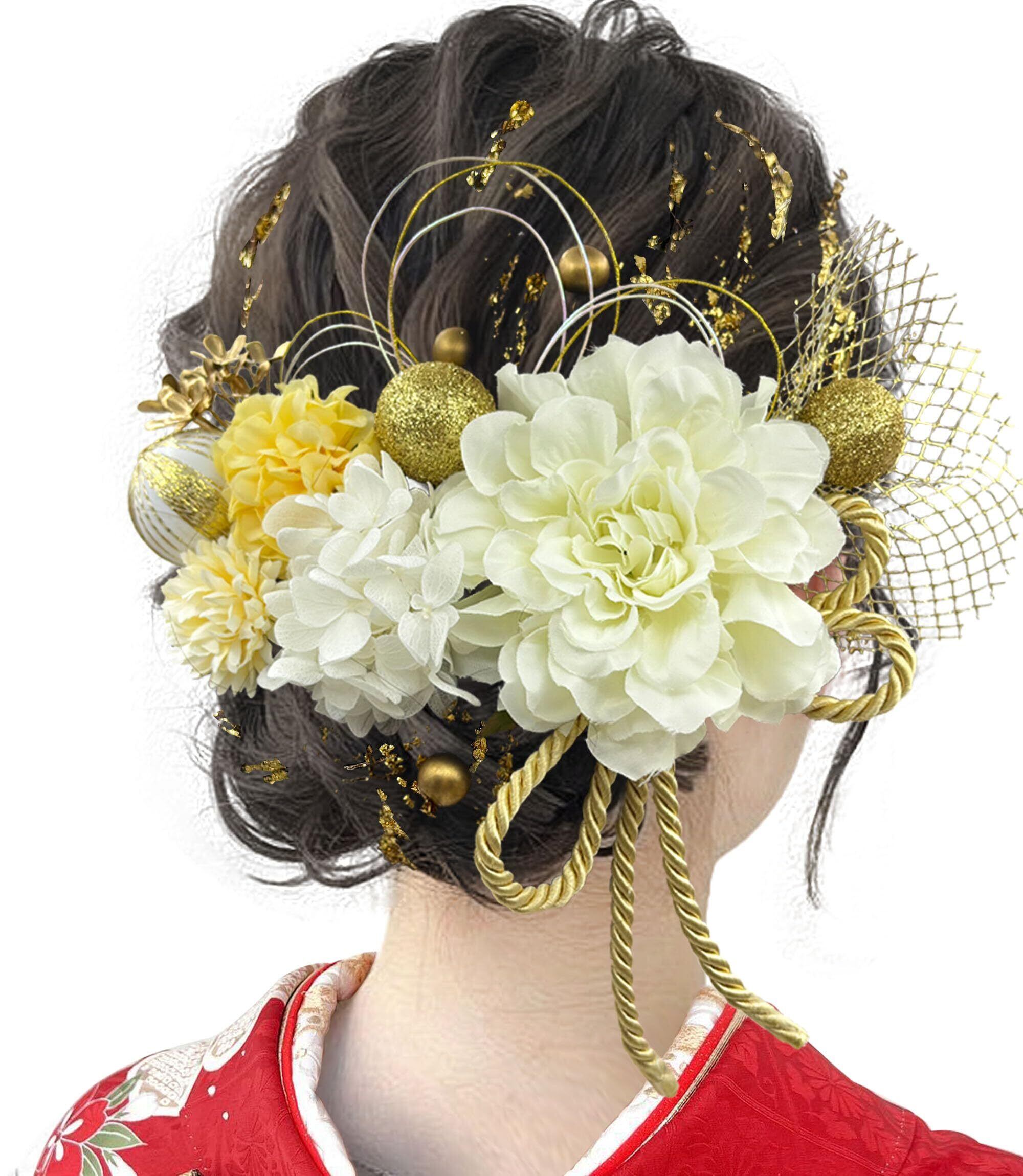 【数量限定】[JZOON] 成人式 髪飾り【10色展開】 ドライフラワー ダリア あじさい かすみ草 造花飾り ヘアアクセサリー 和玉 赤 ゴールド 水引 ヘッドパーツ 振袖 着物 卒業式 七五三 浴衣 袴 結婚式用 手作り 専用ケース付き Y3330 | KURASHILABO