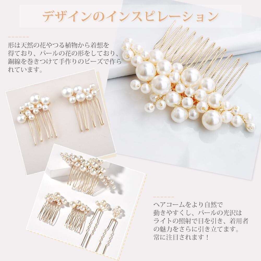【在庫セール】YFFSFDC パールピン パーティ ヘアアクセサリー Uピン ヘアピン 髪飾りパール 卒業式 入学式 成人式 結婚式 花嫁 和装 着物 普段使い 5本セット (ゴールド 5個セット)