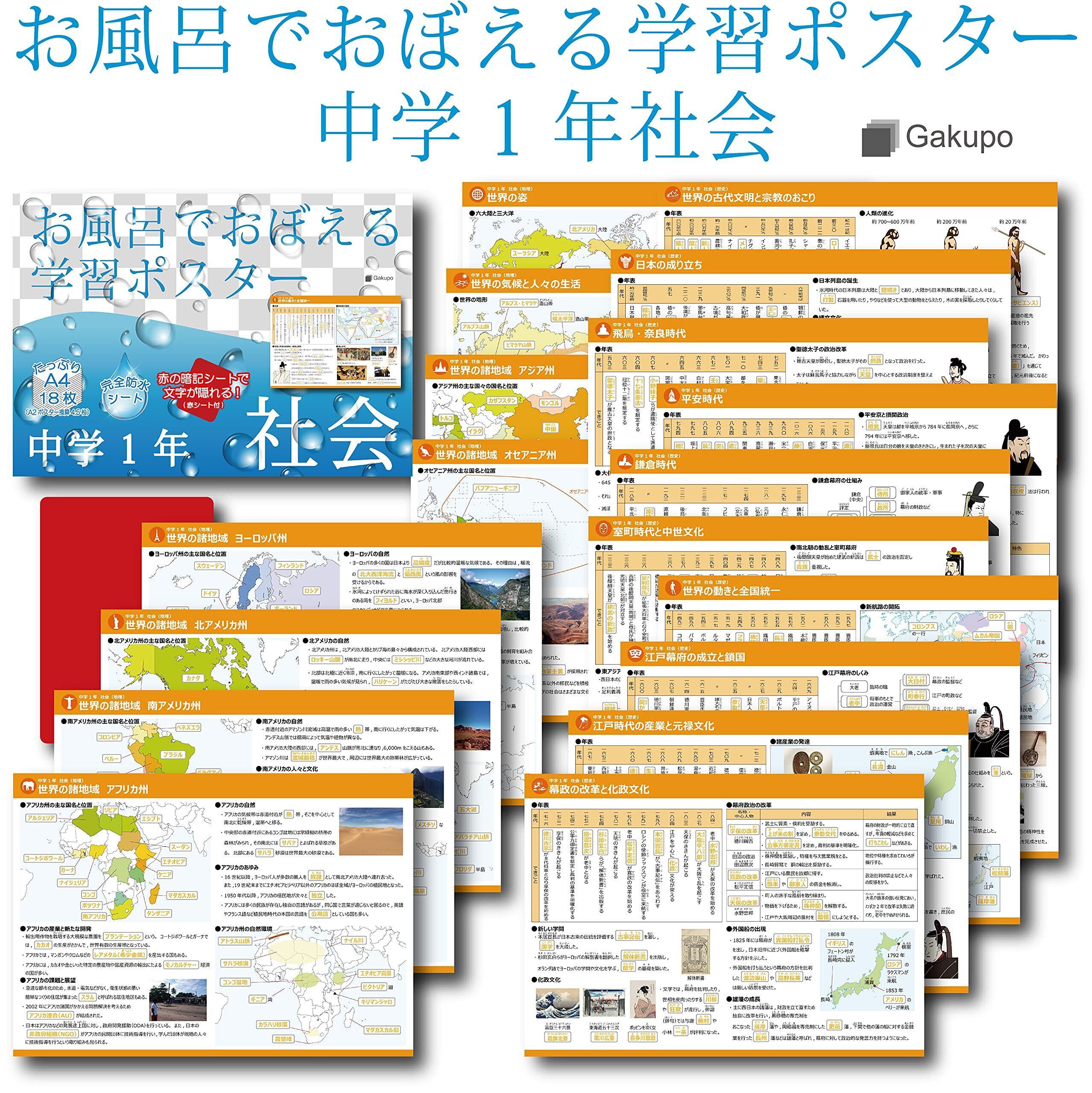 【特価セール】Gakupo お風呂でおぼえる学習ポスター 中学1年社会(暗記シート付) 地理 歴史 教材 防水 中学1年社会 | KURASHILABO