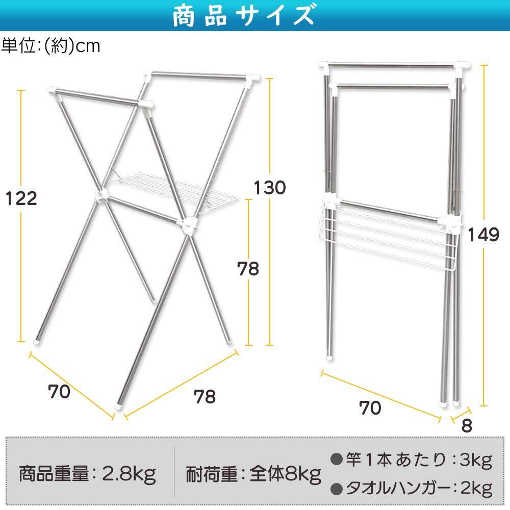 【人気商品】アイリスオーヤマ 組み立て簡単 ふとんも干せるタオルハンガー付きコンパクト洗濯物干し 約2人分 幅約70×奥行約78×高さ約130cm ステンレス製 H-70XN | KURASHILABO