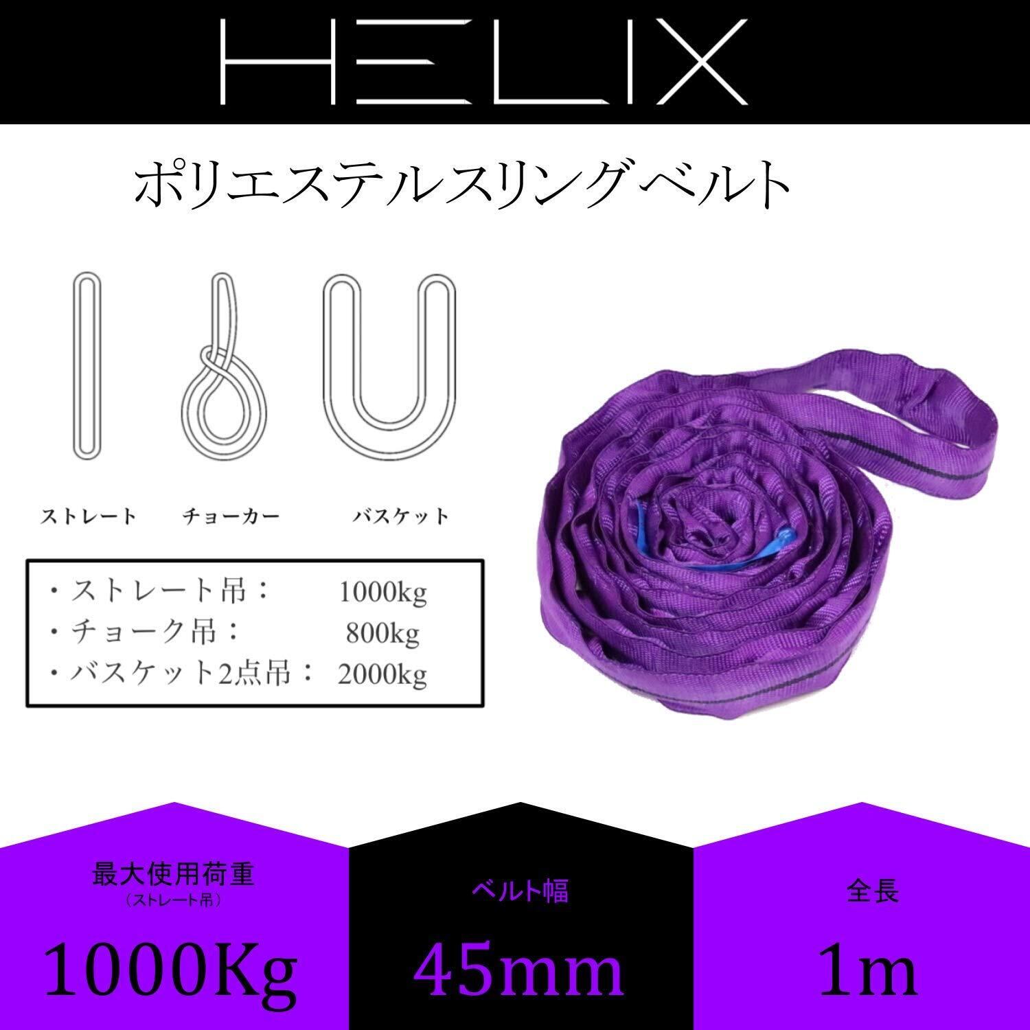 【特価セール】HELIX ラウンドスリング 幅45mm 使用荷重1000kg ナイロンスリング 吊上げ 牽引 エンドレスタイプ 1T 日本語仕様書付 [2本セット ] 1m
