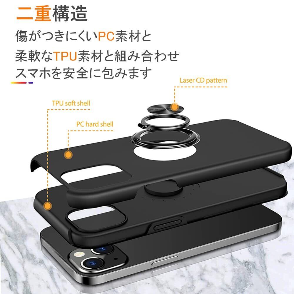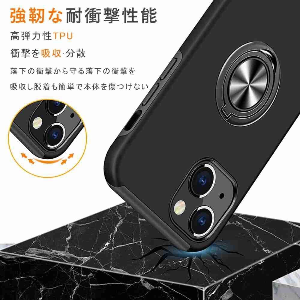 【新春セール】iPhone 15 用 ケース リング付き 耐衝撃 TPU 二重構造 アイフォン15 カバー リング Uovon スマホケース あいほん15 リングつき スタンド機能 車載ホルダー対応 擦り傷防止 落下防止 おしゃれ · ブラック | KURASHILABO