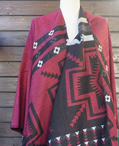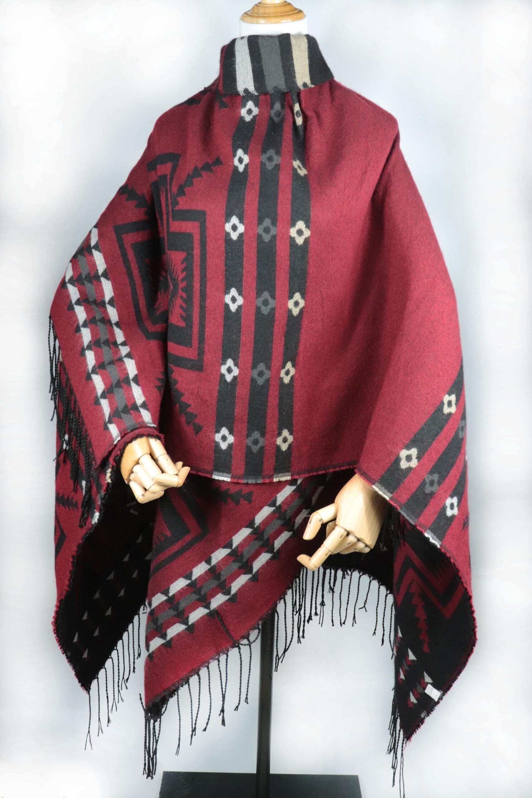 【在庫処分】[LOPKS.] [ロプクス] オルテガ柄 ポンチョ レディース 大判ストール フリンジ エスニック 秋冬 防寒 ショール リバーシブル 32色