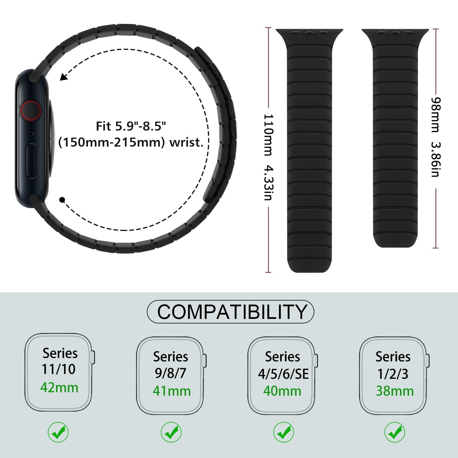 【新着商品】磁気シリコンバンド コンパチブル Apple Watch 42mm(Series11/10) 41mm 40mm 38mm コンパチブル iWatch スポーツループ 男女兼用 軽量ベルト SE Series 11 10 9 8 7 6 5 4 3 2 1,ブラック