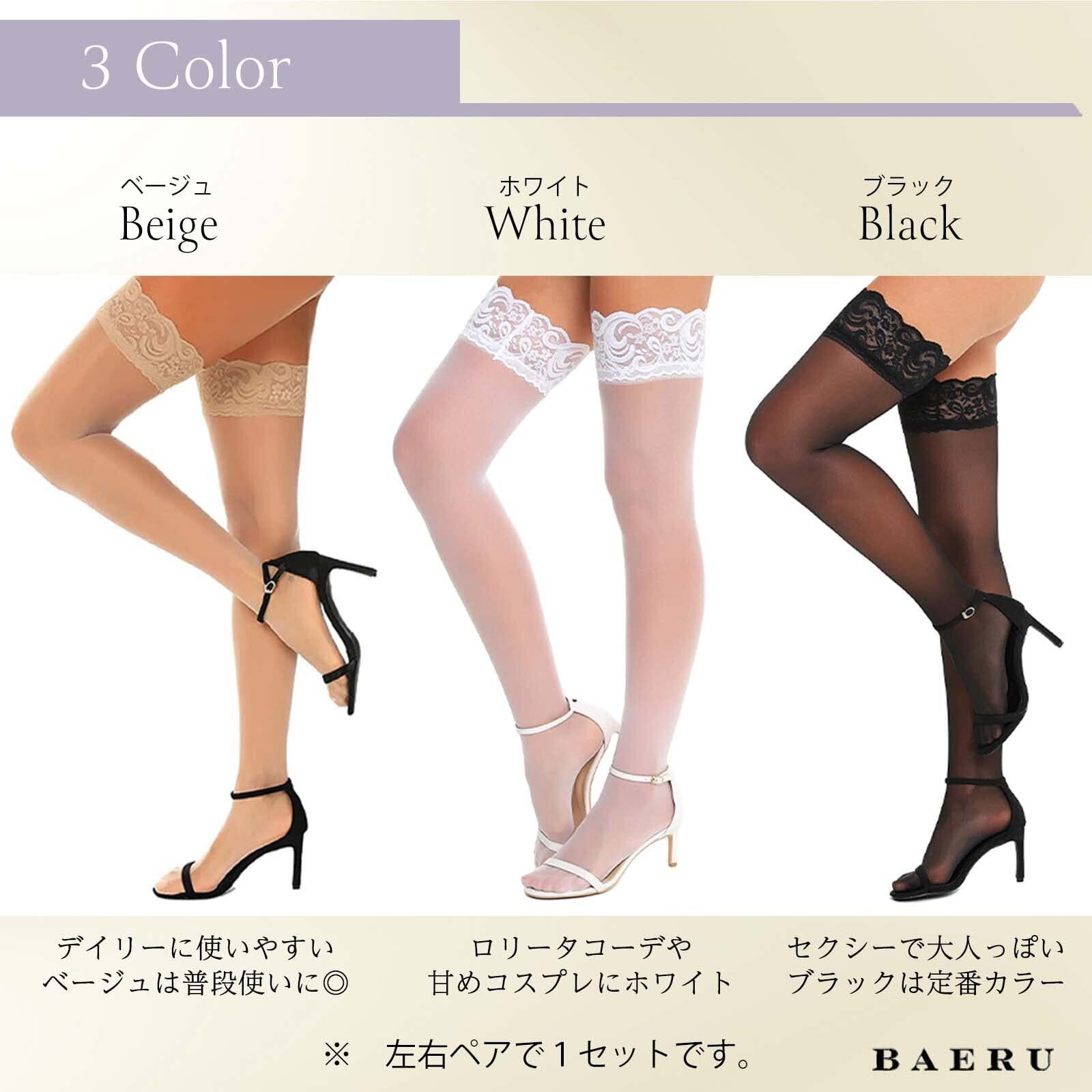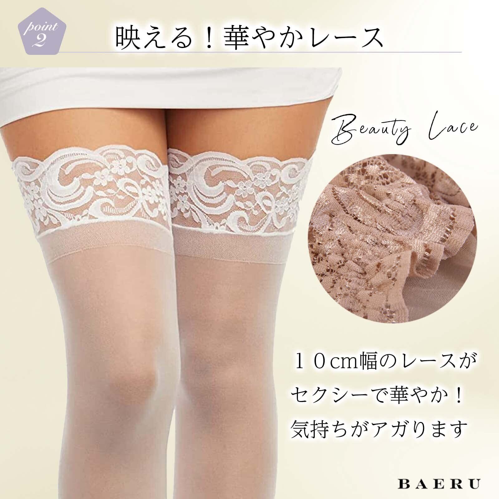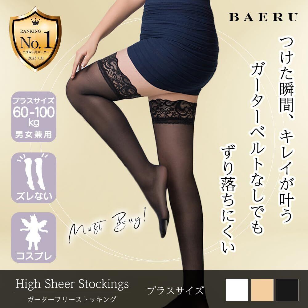 【在庫処分】[BAERU] ガーターストッキング 大きいサイズ ニーハイストッキング ゆったり レディース メンズ 男女兼用 シリコン ストッパー付き レース