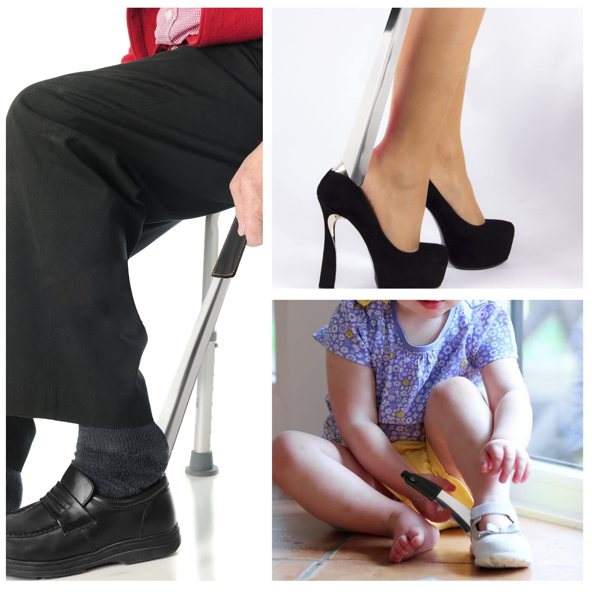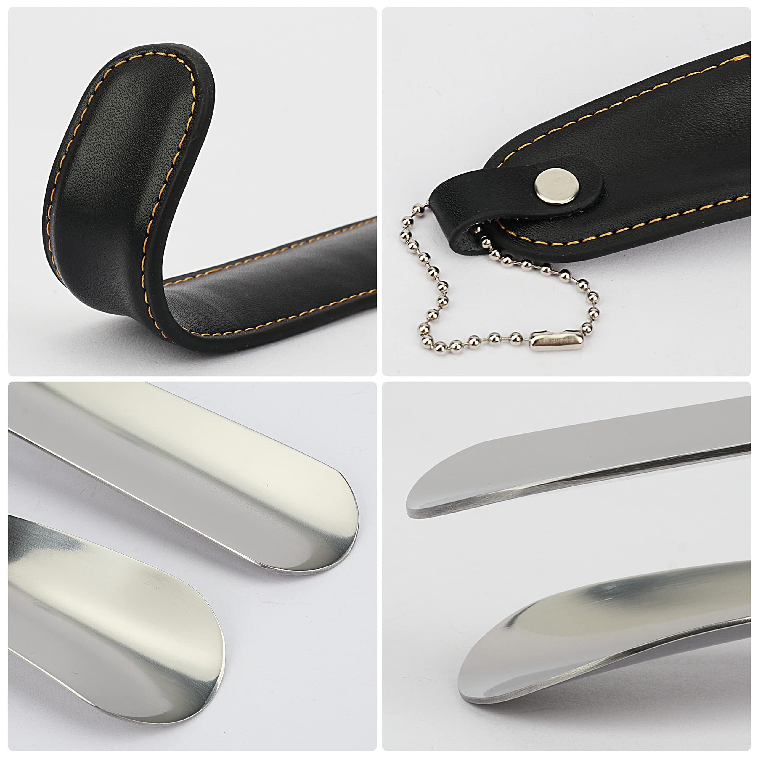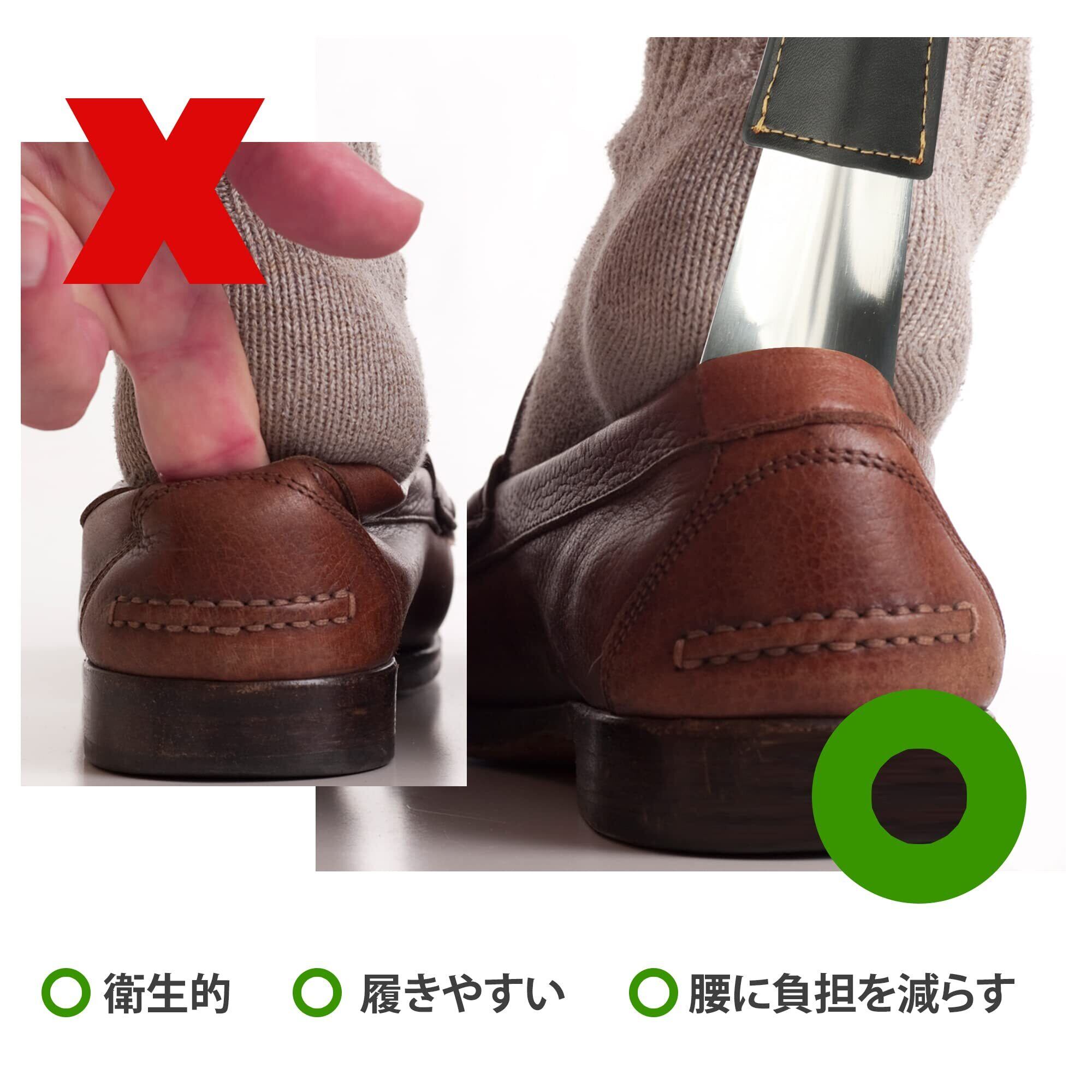 【特価商品】[Temlum] 靴べら くつべら 靴ベラ ステンレス製 シューホーン キーホルダー 靴べら 携帯 ロング 短ヘラ 高級 PUハンドル 子供 妊娠の方 高齢者に向け 二点セット購入 42cm*15.5cm シルバー | KURASHILABO
