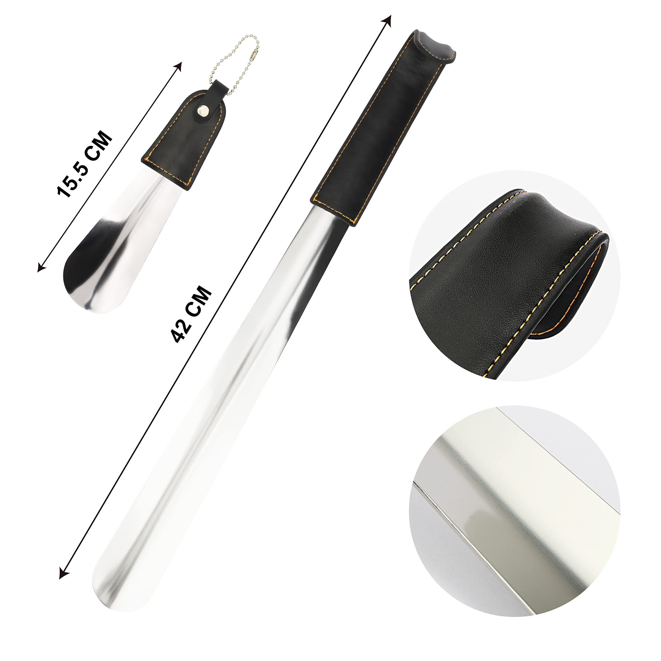 【特価商品】[Temlum] 靴べら くつべら 靴ベラ ステンレス製 シューホーン キーホルダー 靴べら 携帯 ロング 短ヘラ 高級 PUハンドル 子供 妊娠の方 高齢者に向け 二点セット購入 42cm*15.5cm シルバー