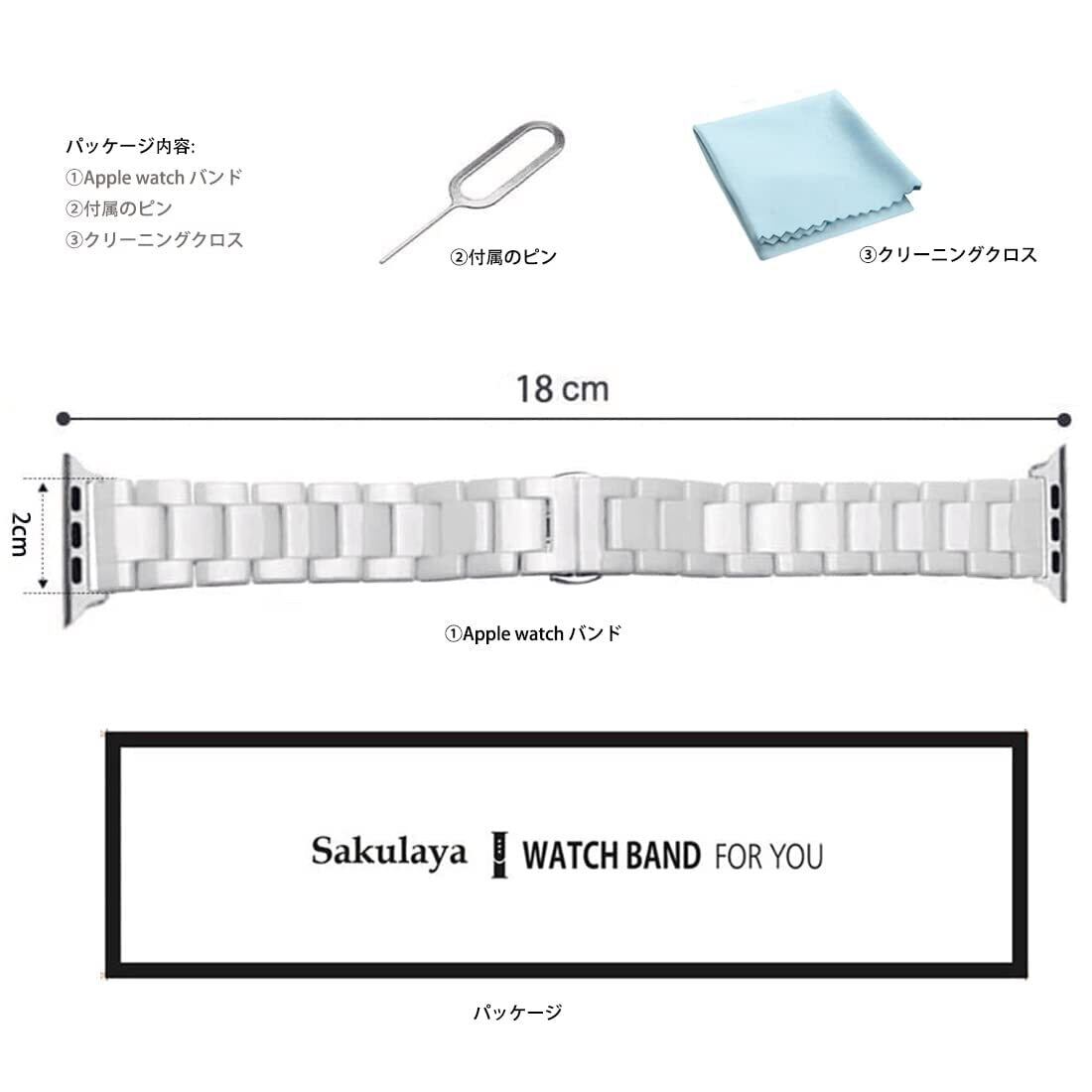 【在庫処分】[Sakulaya] Apple Watch バンド セラミック製 アップルウォッチ バンド 長さ調整簡単 Apple Watch Series 9 8 7 6 Series SE Series 3 45mm/44mm/42mm 対応(ホワイト