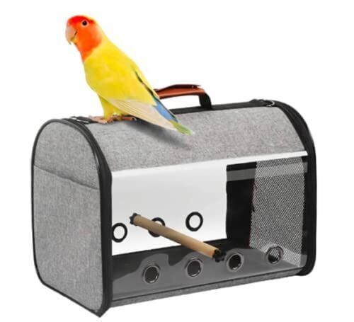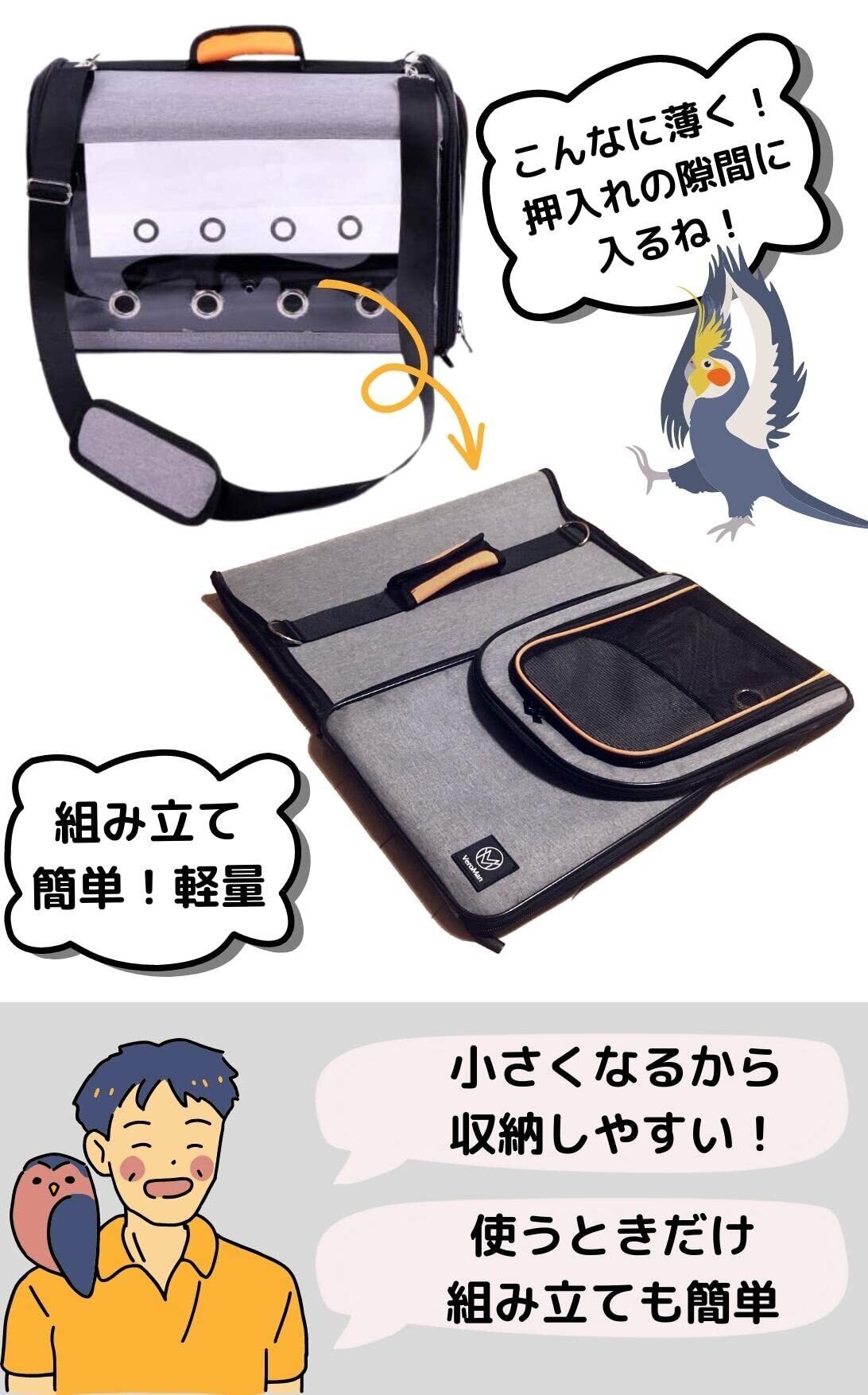 【特価商品】VEROMAN 鳥 インコ 移動用 バード キャリー バッグ 餌入れ付き 小さく収納 (グレー×オレンジ)