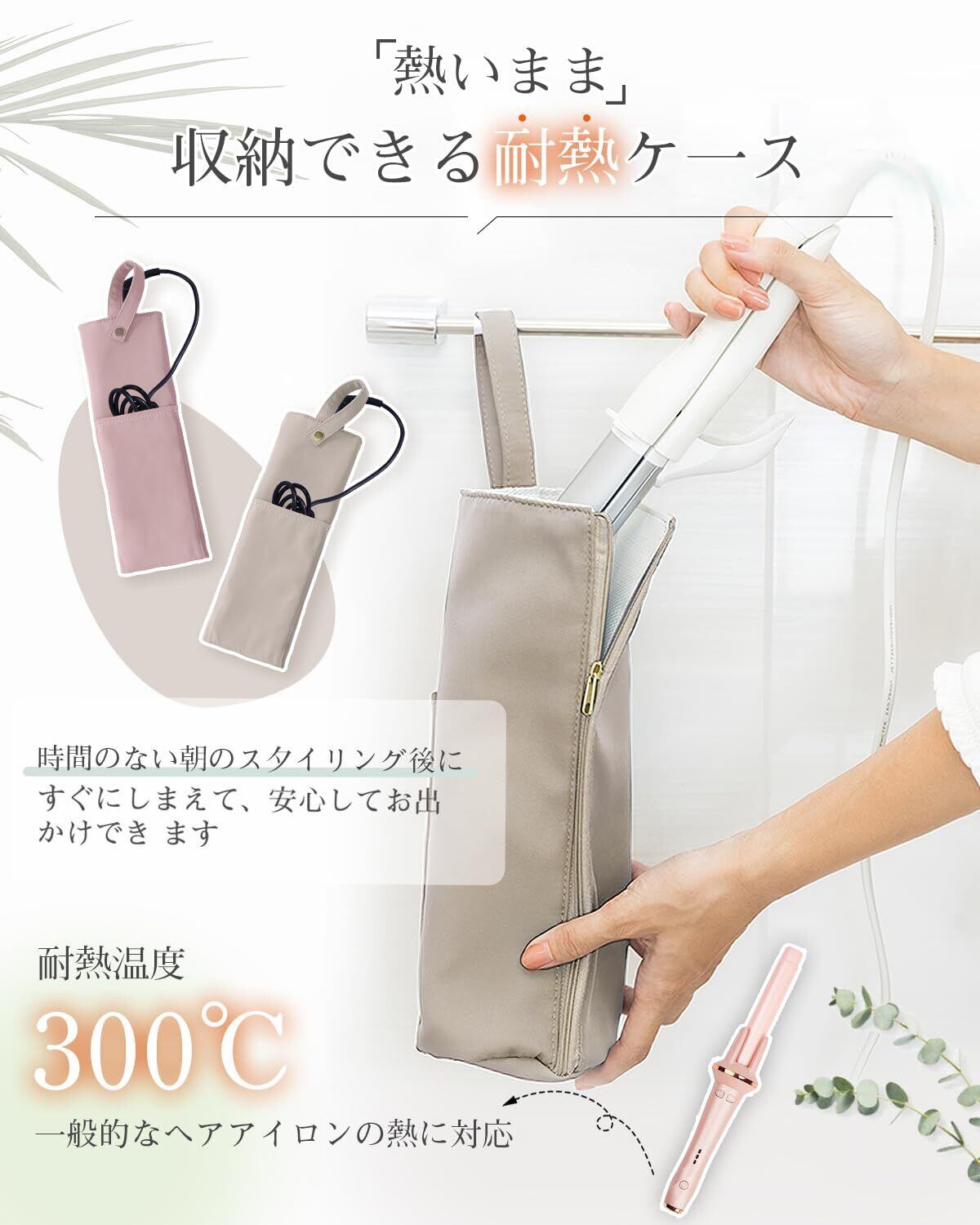 【在庫処分】ヘアアイロン ケース 耐熱 300度 吊り下げ ヘアアイロンポーチ 旅行 コード収納ポケット付き | KURASHILABO