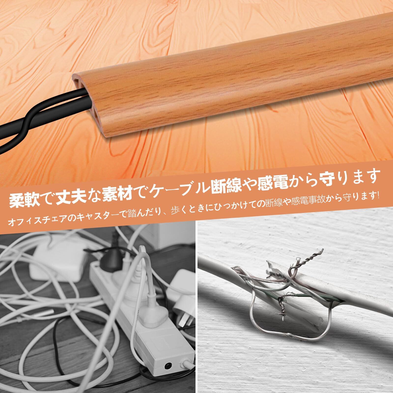 【新春セール】フロアコードカバー ケーブルプロテクター 隠し 配線コード 床用モール ケーブルカバー 収納力良い 延長コードカバー粘着式 壁用 防水 配線隠し 衝撃に強い上 多機能 自宅、オフィス、倉庫、コンサートに最適 (ブラウン木目, 長1m X 幅5cm) | KURASHILABO