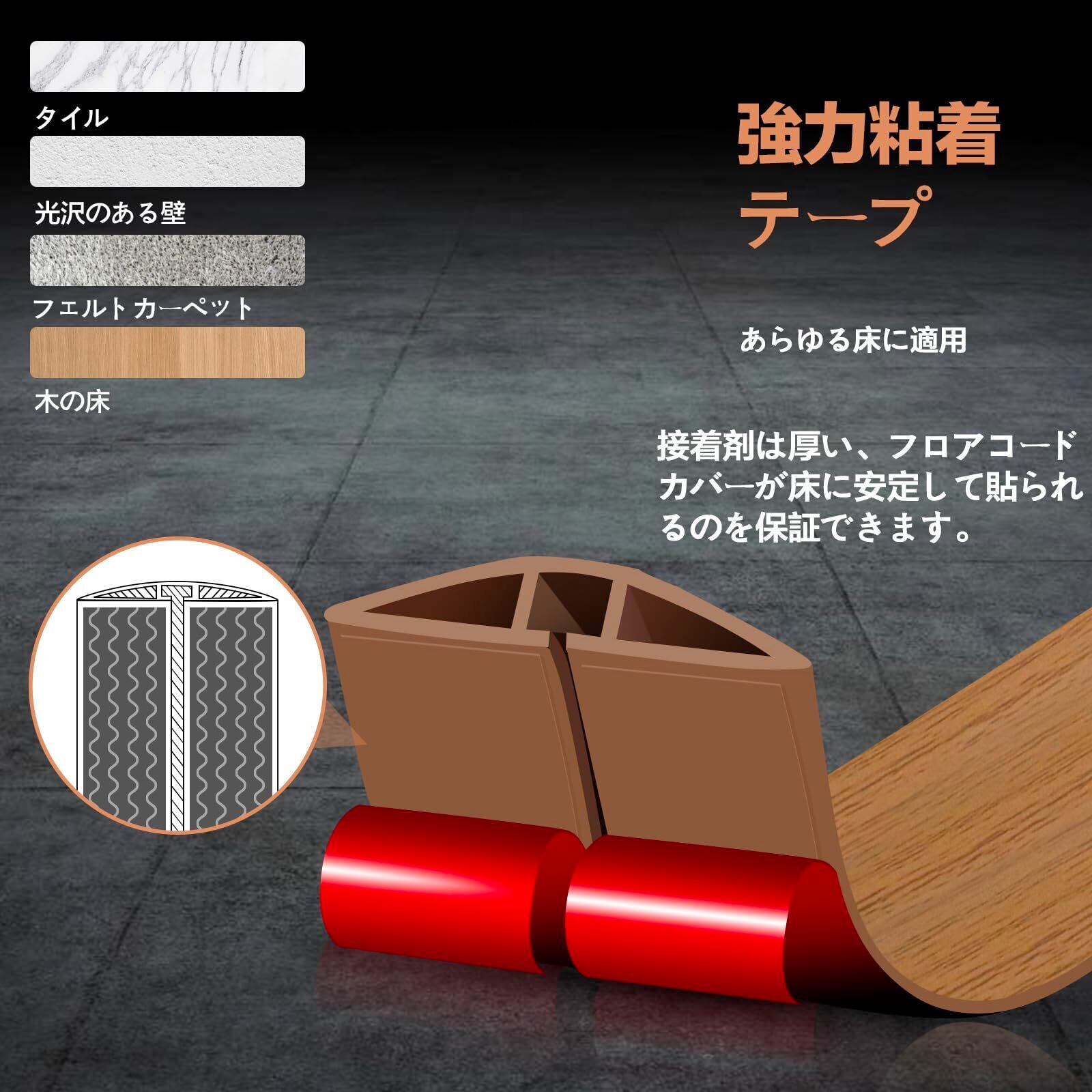 【新春セール】フロアコードカバー ケーブルプロテクター 隠し 配線コード 床用モール ケーブルカバー 収納力良い 延長コードカバー粘着式 壁用 防水 配線隠し 衝撃に強い上 多機能 自宅、オフィス、倉庫、コンサートに最適 (ブラウン木目, 長1m X 幅5cm)