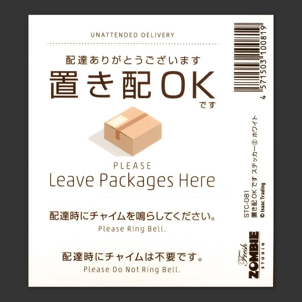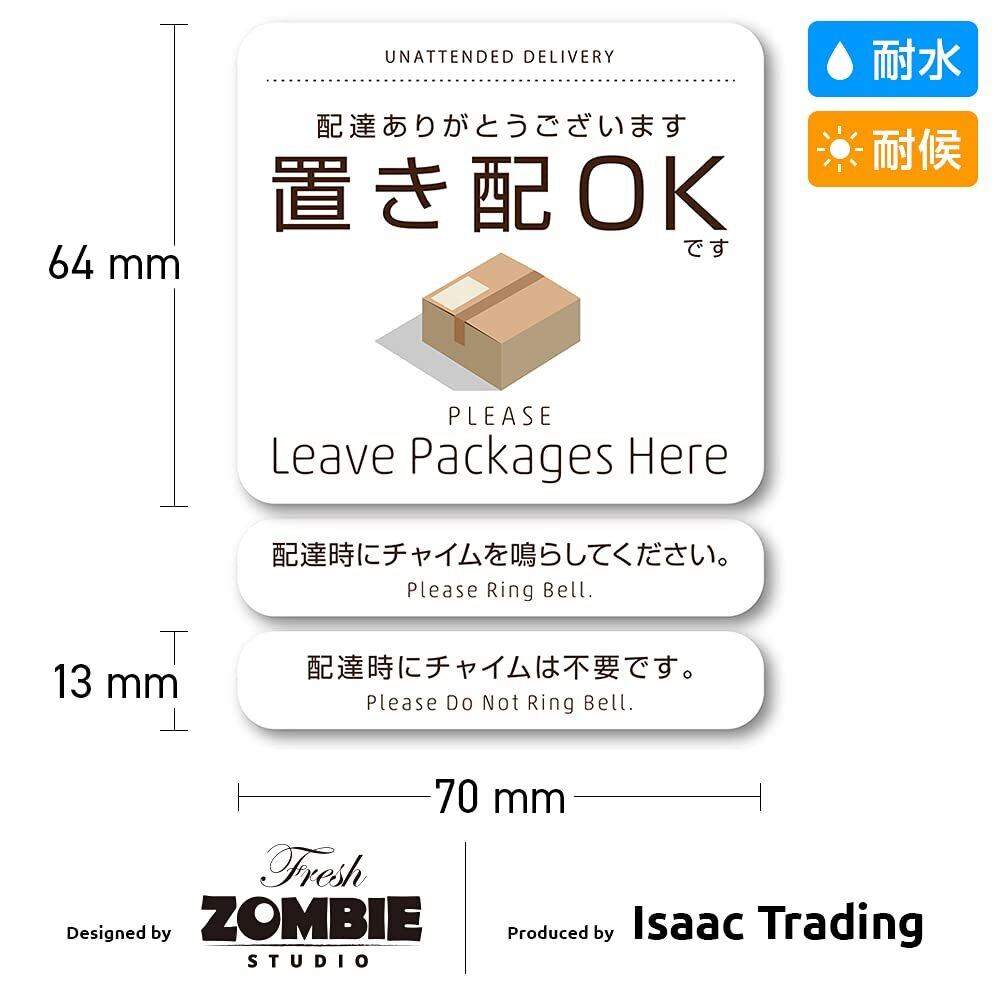 【在庫処分】置き配OK ステッカー チャイム鳴らして(鳴らさないで)ステッカー付き 耐水 耐候 シール 宅配ボックス 宅配便 宅急便 郵便 配達物 荷物 不在 留守 置配 屋外 玄関 (70×64mm)(マットホワイト)