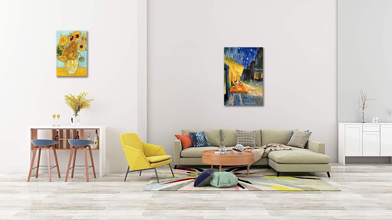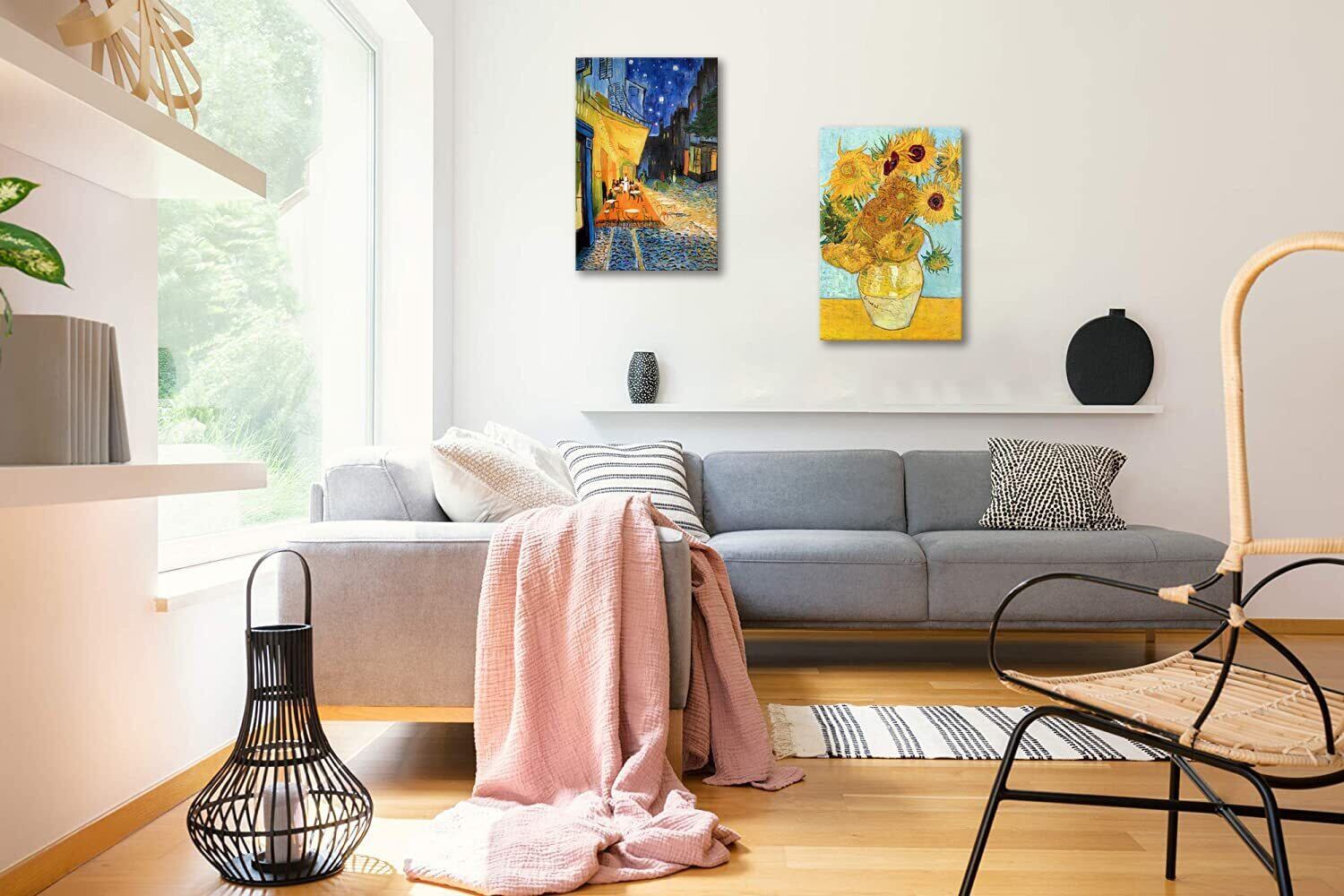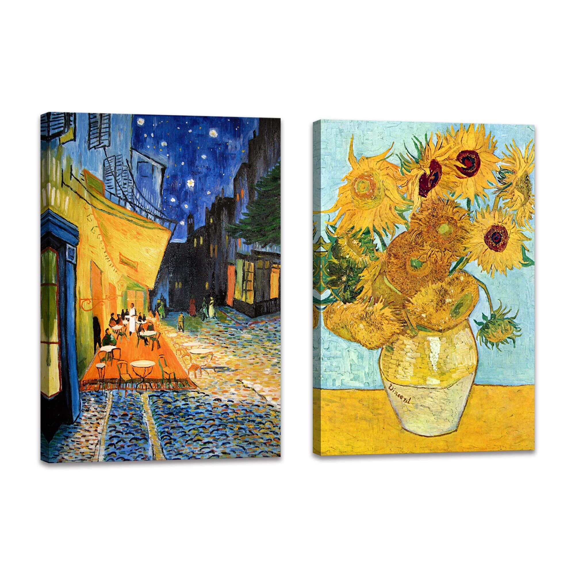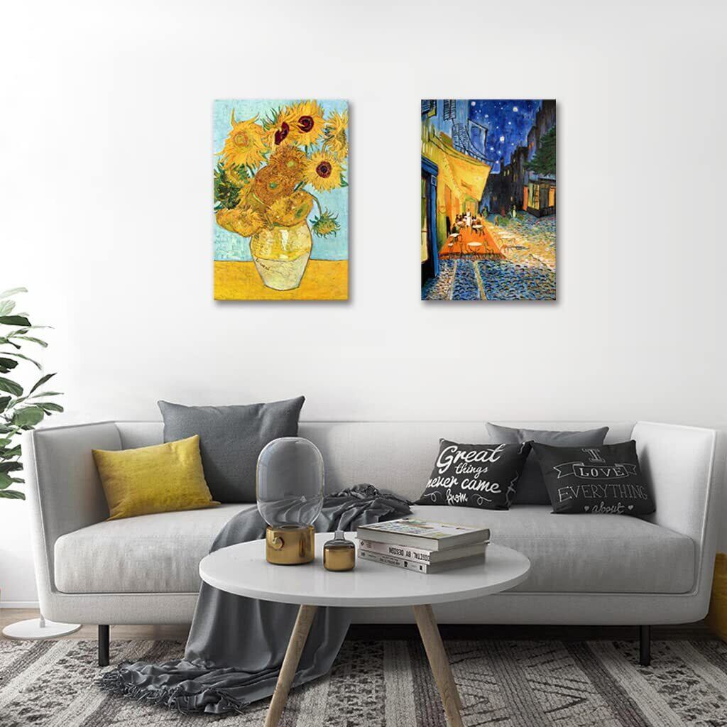 【人気商品】2枚 アート ポスター ゴッホ ひまわり 絵画 パネル 夜のカフェテラス 壁掛け絵画 複製画 抽象 油絵 インテリア装飾 新築 開店 開業/結婚祝い プレゼント (30x40cmx2Pcs) | KURASHILABO