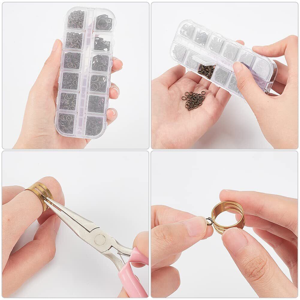 【特価セール】PH PandaHall 約470個/箱 6種セット 真鍮 二重丸カン 4-10mm直径 リング マルカン 丸環 指貫つき 金具セット 基礎パーツ ジュエリー DIY用 手芸用品 クラフト用品 アクセサリーパーツ ハンドメイド ブレスレット アンティークブラウン | KURASHILABO