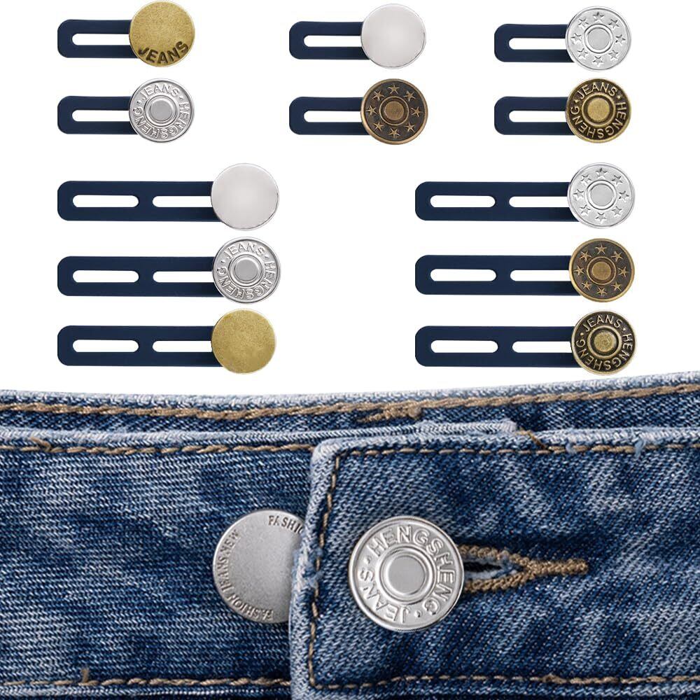 【在庫処分】ウエスト調整ボタン 12個セット 延長 ウエスト 調整 縫い目ない ウエスト アジャスター 延長 ジーンズ スカート 取り外し可能 縫製不要 シリコン製 金属ボタン ゴールド シルバー (延長ボタン, 12個)