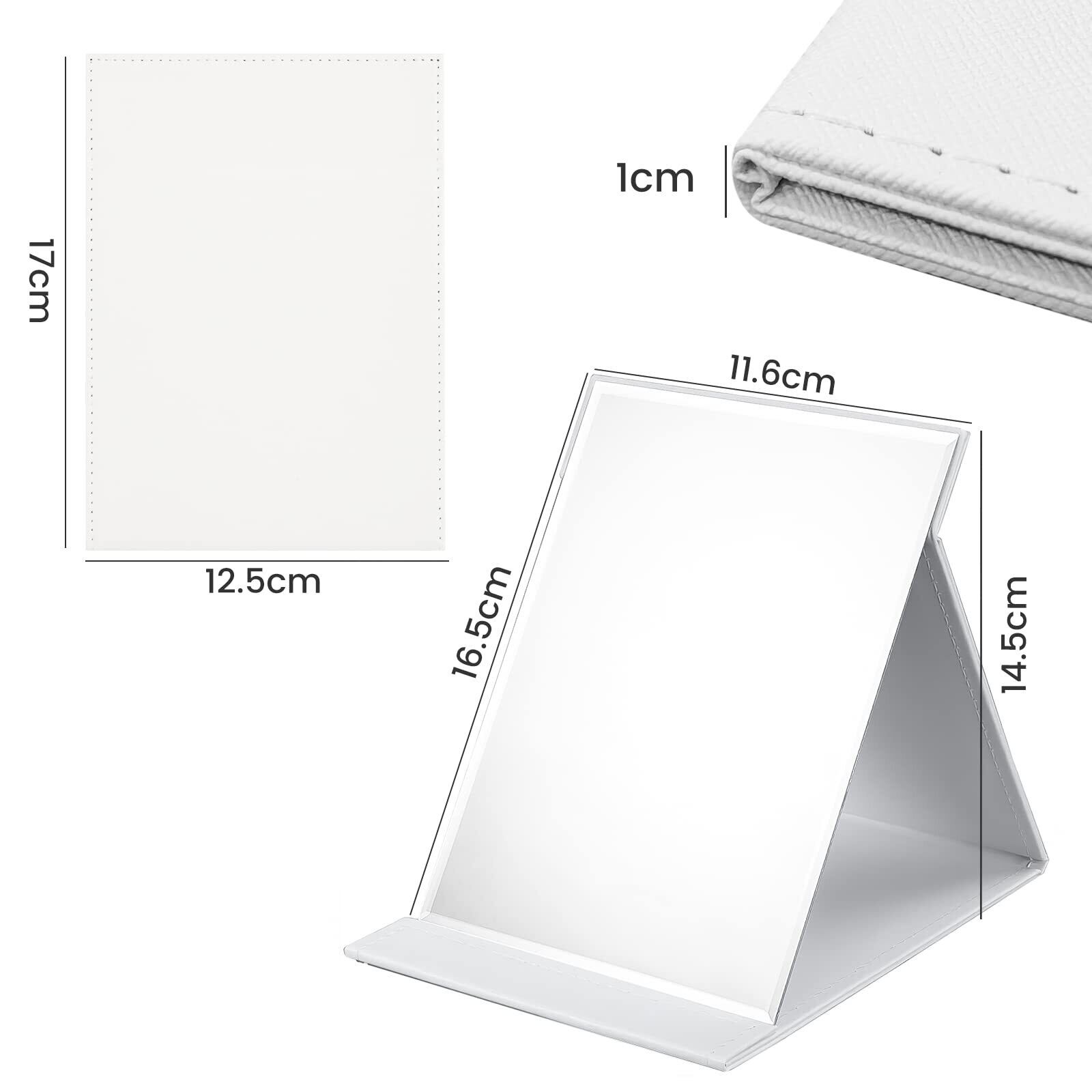 【新着商品】OWLKELA 卓上鏡 コンパクトミラー 折りたたみ手鏡 Sサイズスタンドミラー レザーカバー&割れにくい&おしゃれ 16*12cm ホワイトかがみ