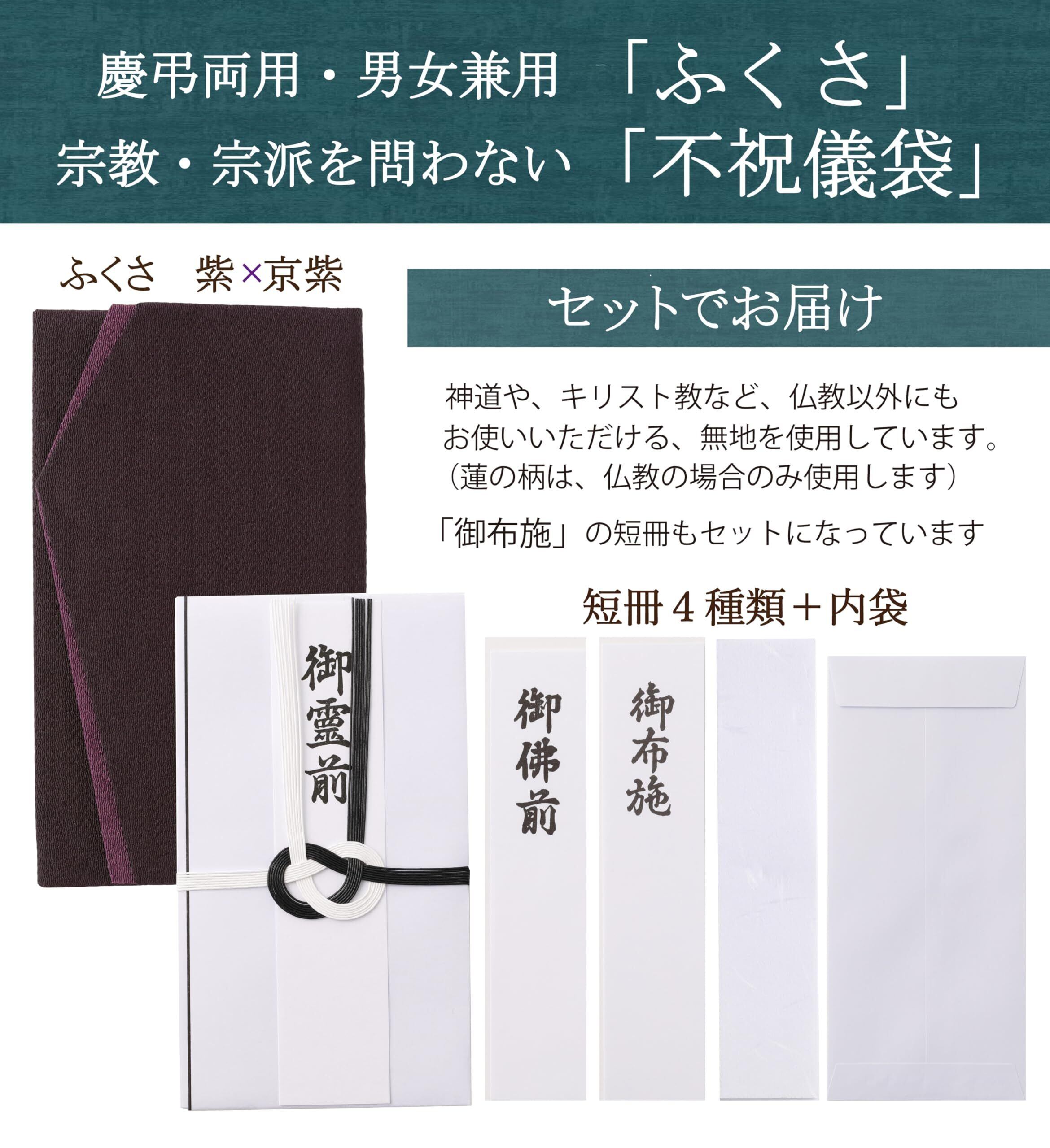 【在庫処分】ふくさ 不祝儀袋 セット 慶弔両用 男女兼用 香典 御布施 袱紗 (紫×京紫)