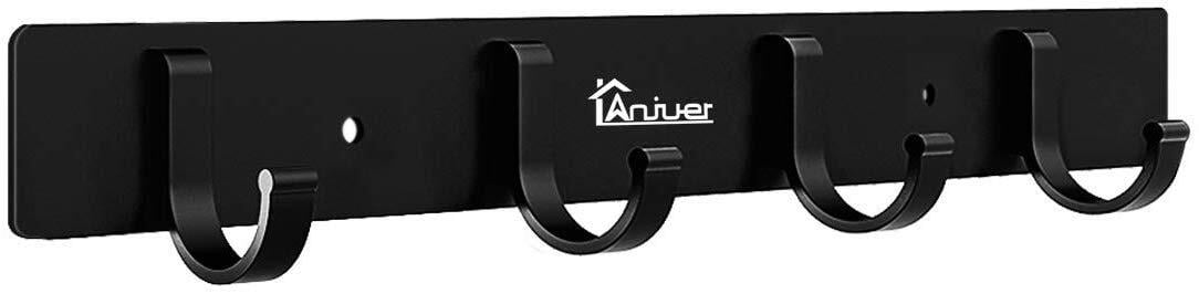 Anjuer 壁掛けフック 4連ウォールハンガー 収納フック 帽子掛け 洋服掛け コート掛け アルミニウム合金製 ブラック