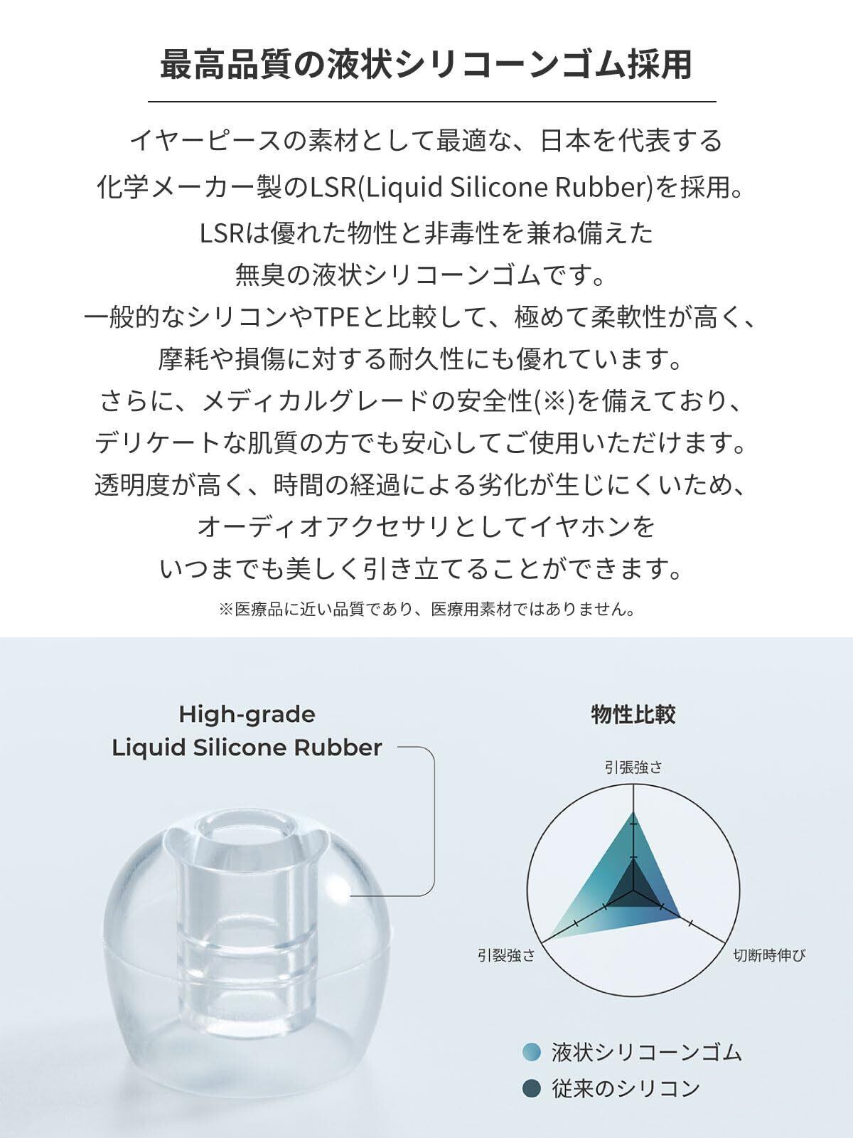 【イヤホンの装着性を高める独自形状】一般的なイヤーピースと比較して耳のより奥の広いエリアでフィットする独自形状により密閉性が向上。豊かな低音再生とイヤホンの落下防止を両立する極めて安定した装着感を実現します。抗菌仕様のため永く清潔にご使用いただけます。