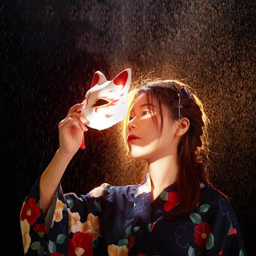 【幅広い用途】。お祭りやハロウィン、学園祭などで活躍します。伝統的な狐のお面が華やかさと個性を演出します。商品に若干の汚れや破損がある場合は、ご連絡ください。交換や返金の対応をさせていただきます。