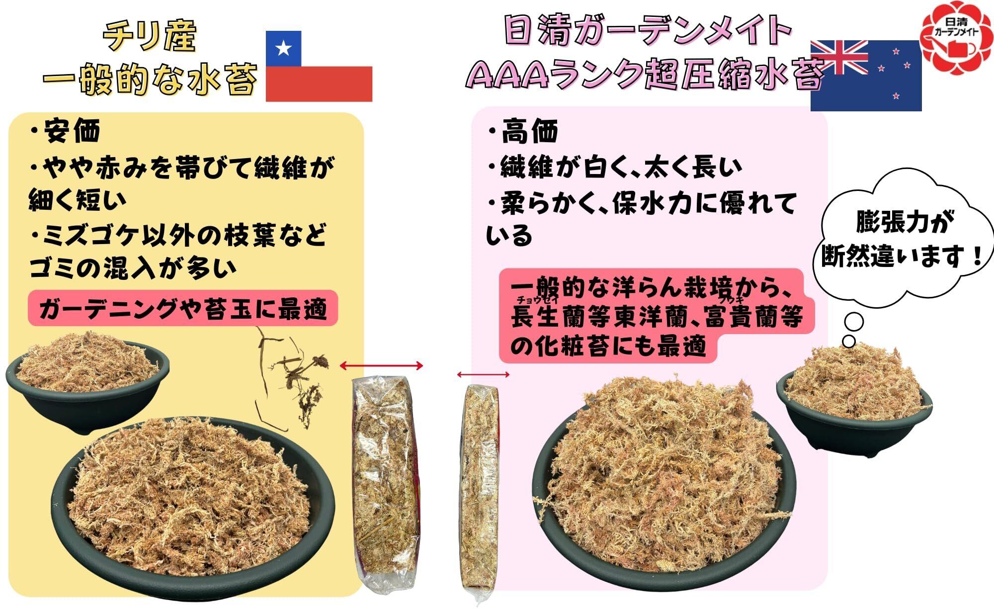 ニュージーランド産水ゴケは清潔で美しく、保水・排水性に優れています。