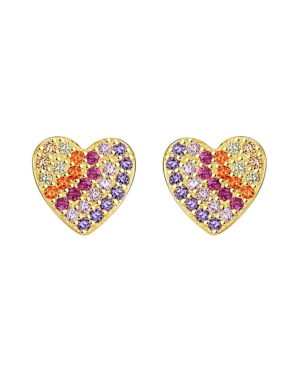 【上品なデザイン】超かわいいハートスタッドは、K18ゴールドメッキシルバーにセットされたマルチカラーのスパークリングジェムストーンマイクロパヴェを備えています。充分な存在感、女心くすぐるデザインに。ダイヤモンドを凌駕する輝きが美しいデザインしたアイテムです。大人の女性につけてほしい贈り物にも喜ばれること間違いなし!