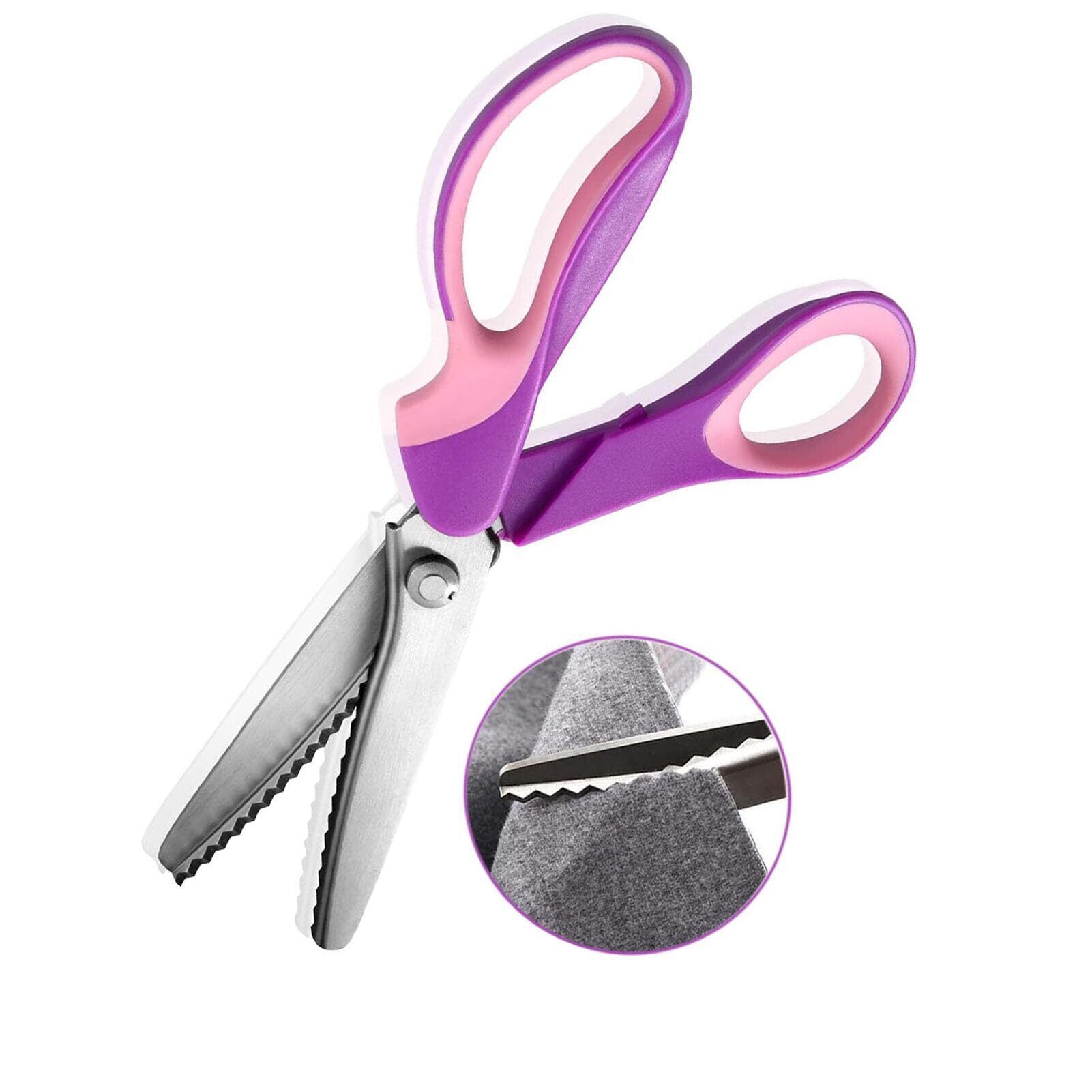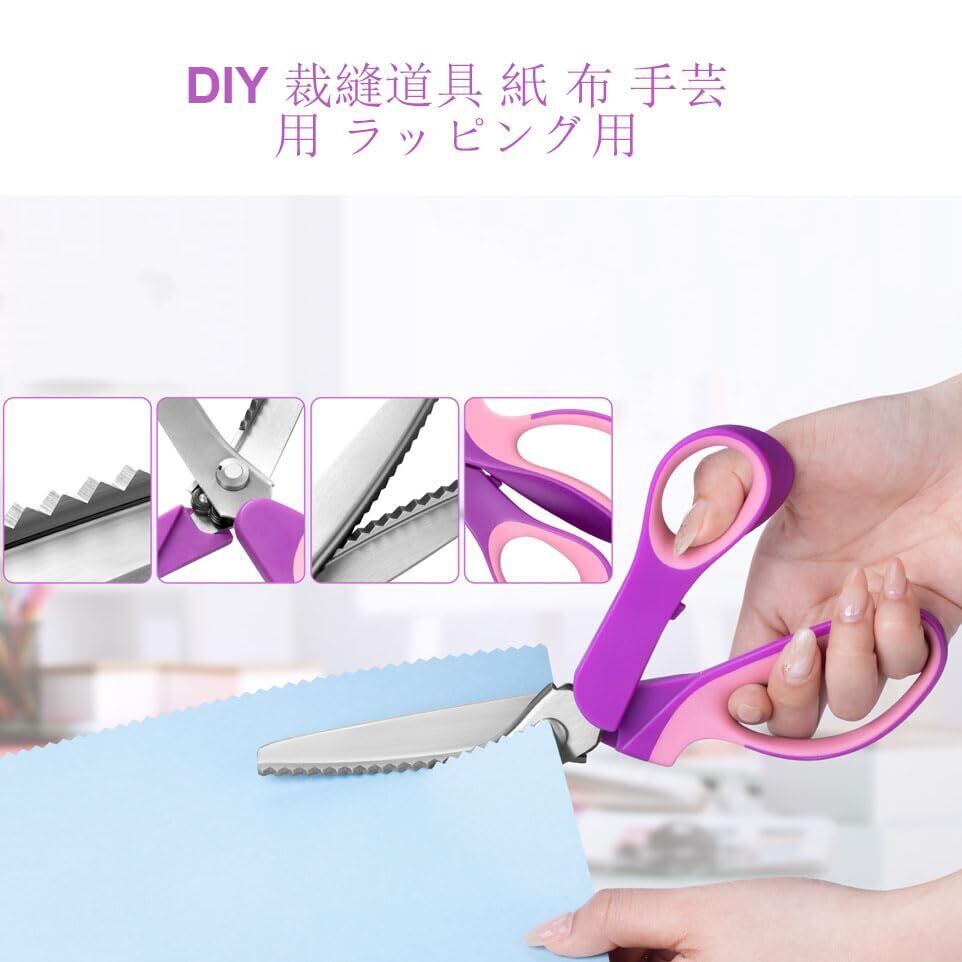 【在庫セール】ピンキングはさみ 5ミリギザギザ 230ミリ/ギザギザカット ステンレス製 カットカーブ はさみ ピンキング鋏 ピンキングはさみ クラフト DIY 裁縫道具 紙 布 手芸用 ラッピング用-パープルピンク | KURASHILABO