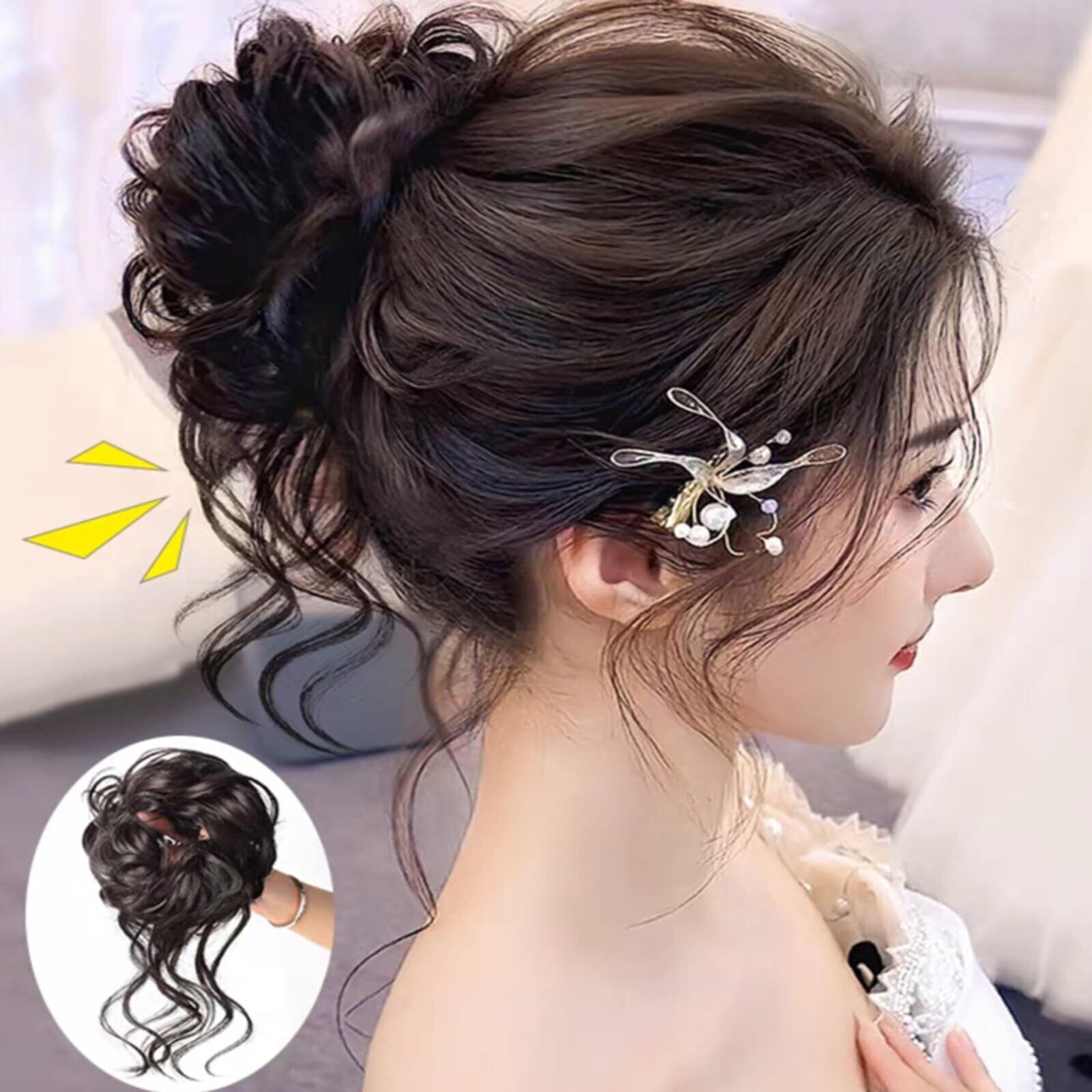 【数量限定】お団子 ポイントウィ ウィッグ 和装 シニヨン 部分 ウィッグ つけ毛 髪飾り ボリュームアップ 簡単 自然 感 ピッタリな髪型 おしゃれ 人気 レディース (茶色がかった黒, ィッグ エアリー カール) | KURASHILABO