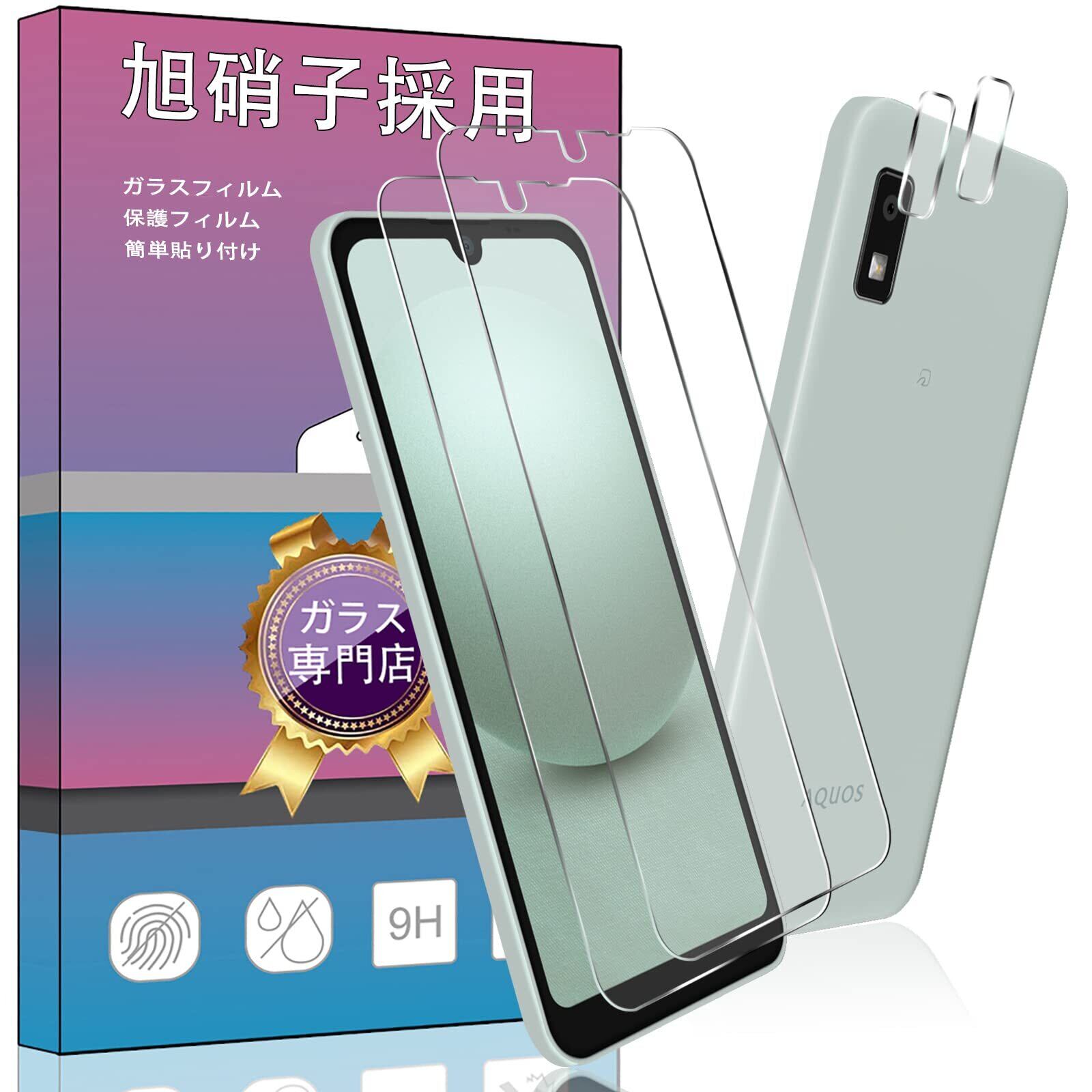 【数量限定】2枚 対応 AQUOS wish3 A302SH / SH-53D 専用の ガラスフィルム + 2枚 For AQUOS Wish SHG06 / SH-M20 / A104SH カメラ保護フィルム 強化ガラス 超薄型 液晶保護フィルム Wish2 SH-51C 専用の 日本旭硝子素材AGC 高透過率 硬度9H 飛散防止 ラウンドエッジ加工 AQUOS wish3 A302SH 用の 液晶保護フィルム PCduoduo 2枚 ガラスフィルム+2枚カメラ保護フィルム
